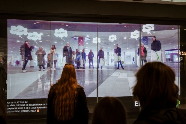 Elgiganten sätter upp en installation på Sergels torg där förbipasserande ser sig själva på storbildsskärm – med en virtuell Elgiganten-påse i handen och roliga tankar kopplade till sitt köp. Med hjälp av teknologier som Augmented Reality (AR) och skeleton tracking skapar Elgiganten en interaktiv, engagerande och minnesvärd upplevelse för de förbipasserande.