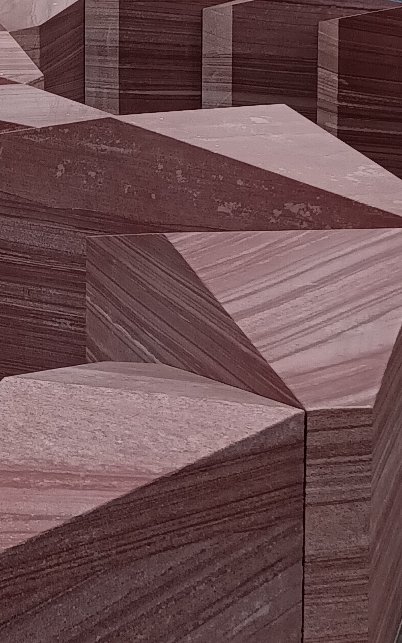 Den är gjord i Älvdalskvartsit och står på en stenläggning av salvan.
