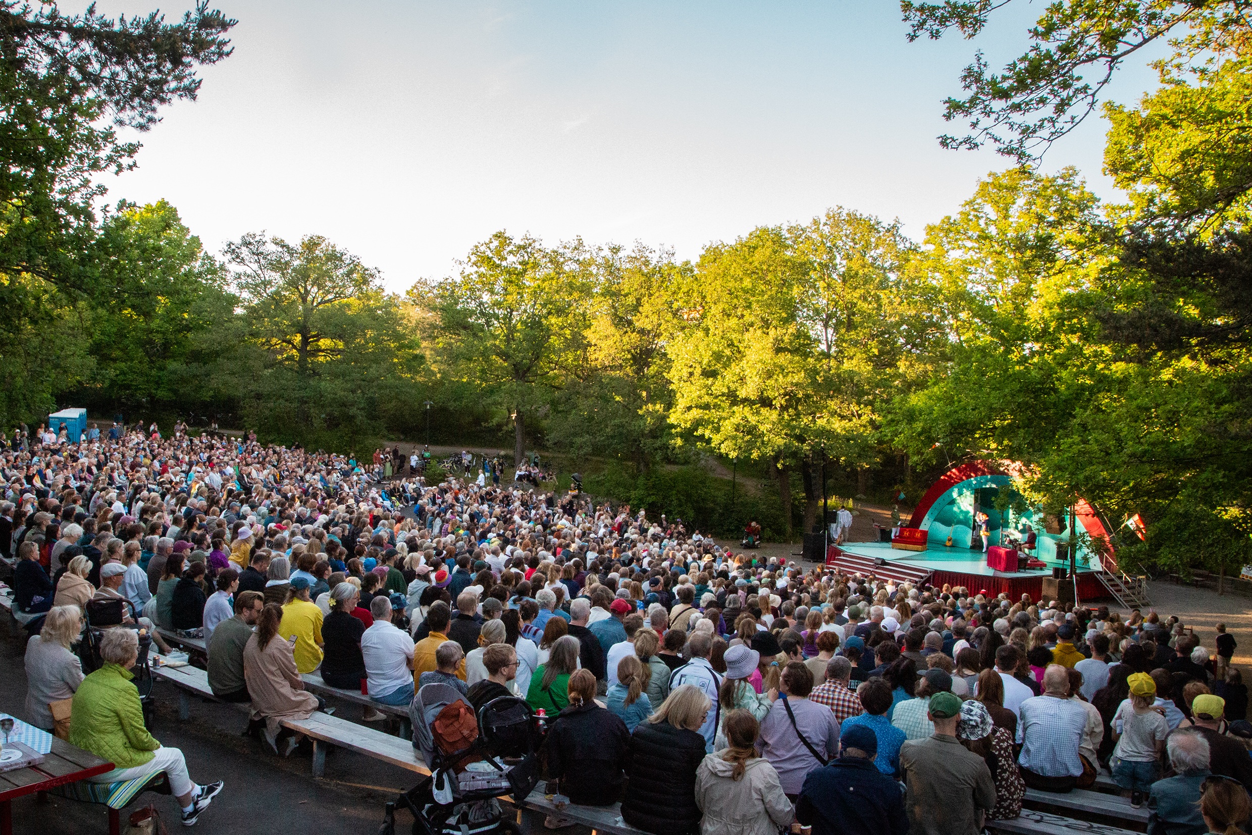 En nyhet är att Parkteatern stannar över två veckor i Hägerstensåsens amfiteater med ett brett teaterprogram i juli. Vitabergsparken präglas av starka röster inom stand up och poesikväll med Sara Nazari samt koreografer som Virpi Pahkinen och Philip Berlin. Men också politisk kabaré med ukrainska Dakh Daughters, hyllad föreställning om Kikki Danielsson, Östfrontens Pelikanen och Robert Fux queera hyllning till folkmusiken ackompanjerad av nyckelharpa. Avslutningsvis ramar Richard Hamrin in hösten med en skymningsopera i Vitabergen och Unga Klara framför Romeo & Julia två septemberkvällar mitt på Sergels torg.