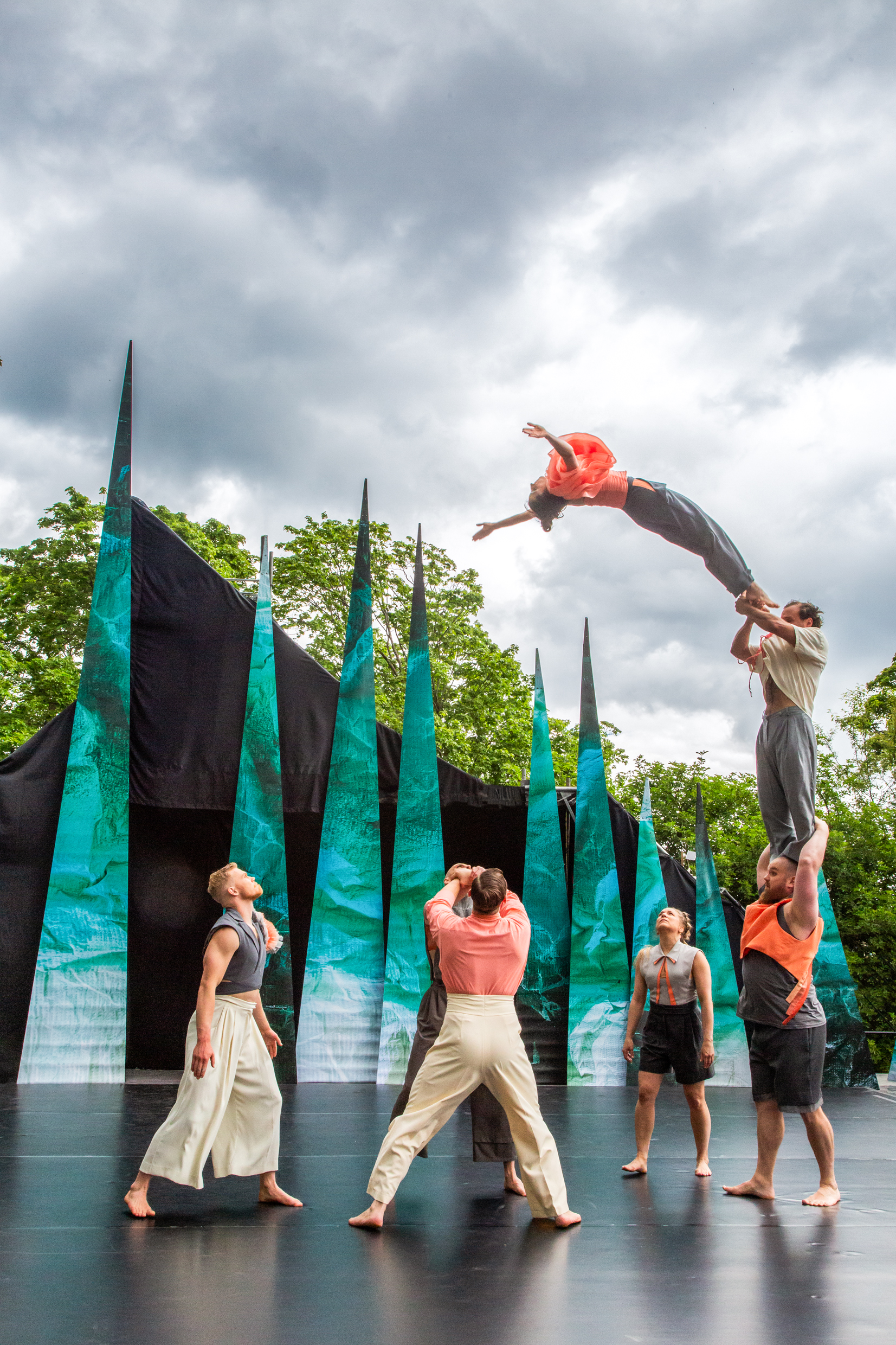 In Praise of Shadows är en samproduktion mellan Parkteatern och det internationellt uppmärksammade svenska cirkuskompaniet Below Zero. Med svindlande balansakter, imponerande akrobatik och i en scenografi som för tankarna till bergen, haven och vågorna rör sig sju individer till tonerna av nyskriven folkmusik som framförs live på scen. Föreställningen spelar i Stockholms parker till och med den 5 juli för att därefter turnera vidare i Sverige och internationellt med start hösten 2025.