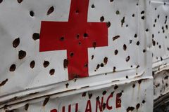 Sönderskjuten ambulans Karin Tengby Röda Korset