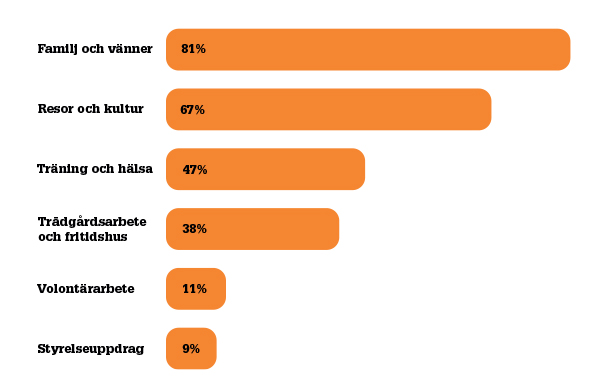 Ledarna frågade även vad cheferna kommer att ägna sig åt efter att de gått i pension. Vänner och familj kom högst upp på listan, följt av resor och kultur.