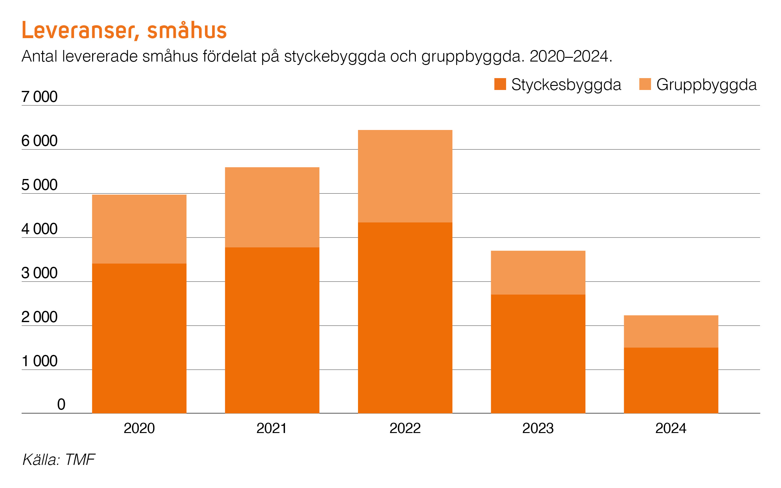 Många bedömare trodde att svensk industri – inte minst byggsektorn – skulle börja återhämta sig under 2024 efter några tuffa år. Förhoppningen stod bland annat till ökad konsumtion med ett mer gynnsamt ränteläge. Men återhämtningen har dröjt och såväl orderingångar som leveranser av hus ligger kvar på låga nivåer, där leveranserna av småhus minskat med 40 procent jämfört med föregående år.