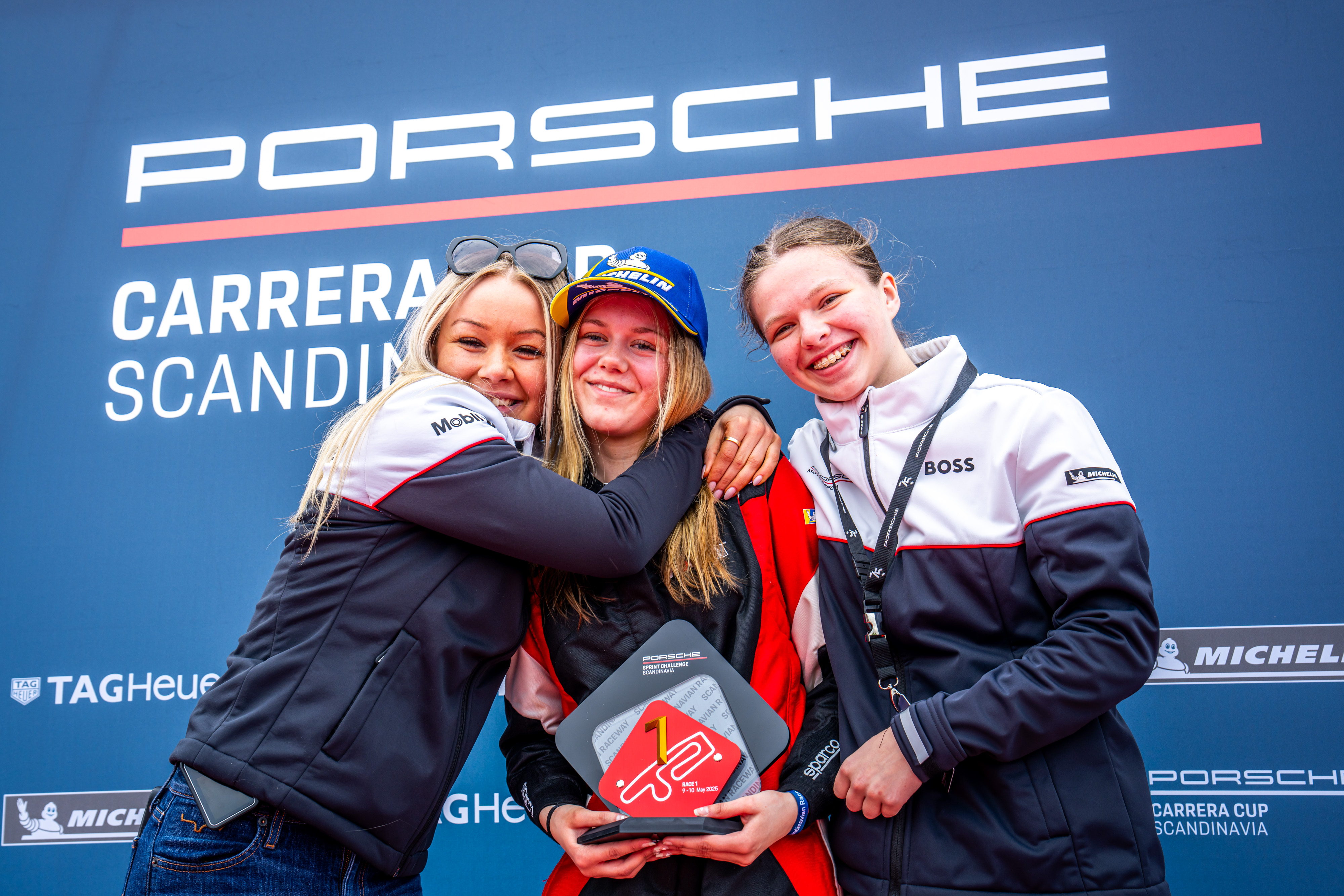 I supportklassen Porsche Sprint Challenge Scandinavia var det tjejerna som dominerade. 16-åriga racingtalangen Alexia Danielsson från Storvreta utanför Uppsala skrällvann det första heatet före danskan Lærke Rönn och i det andra triumferade Rønn före Emma Wigroth från Halmstad.