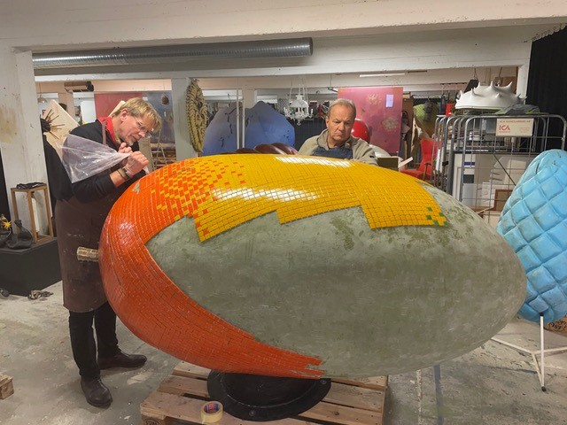 Vi har i tidigare gårdsupprustningsprojekt i Bredäng jobbat med Johan, då har han gjort lysande tallkottar och ekollon i anslutning till tall- respektive ekdungar. Det har blivit väldigt fint och därför tänkte vi att samma koncept kunde passa här, säger Anneli Wallgren, funktionsansvarig landskapsarkitekt på Svenska Bostäder.