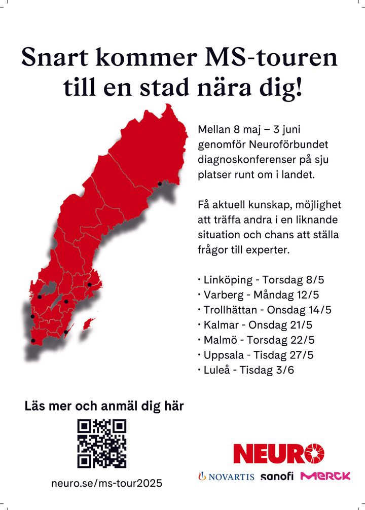 Evenemanget är öppet för allmänheten och riktar sig särskilt till personer som nyligen diagnostiserats med MS, deras anhöriga samt vårdpersonal inom primärvården. Anmälan kan göras via Neuroförbundets hemsida: www.neuro.se/ms-tour2025