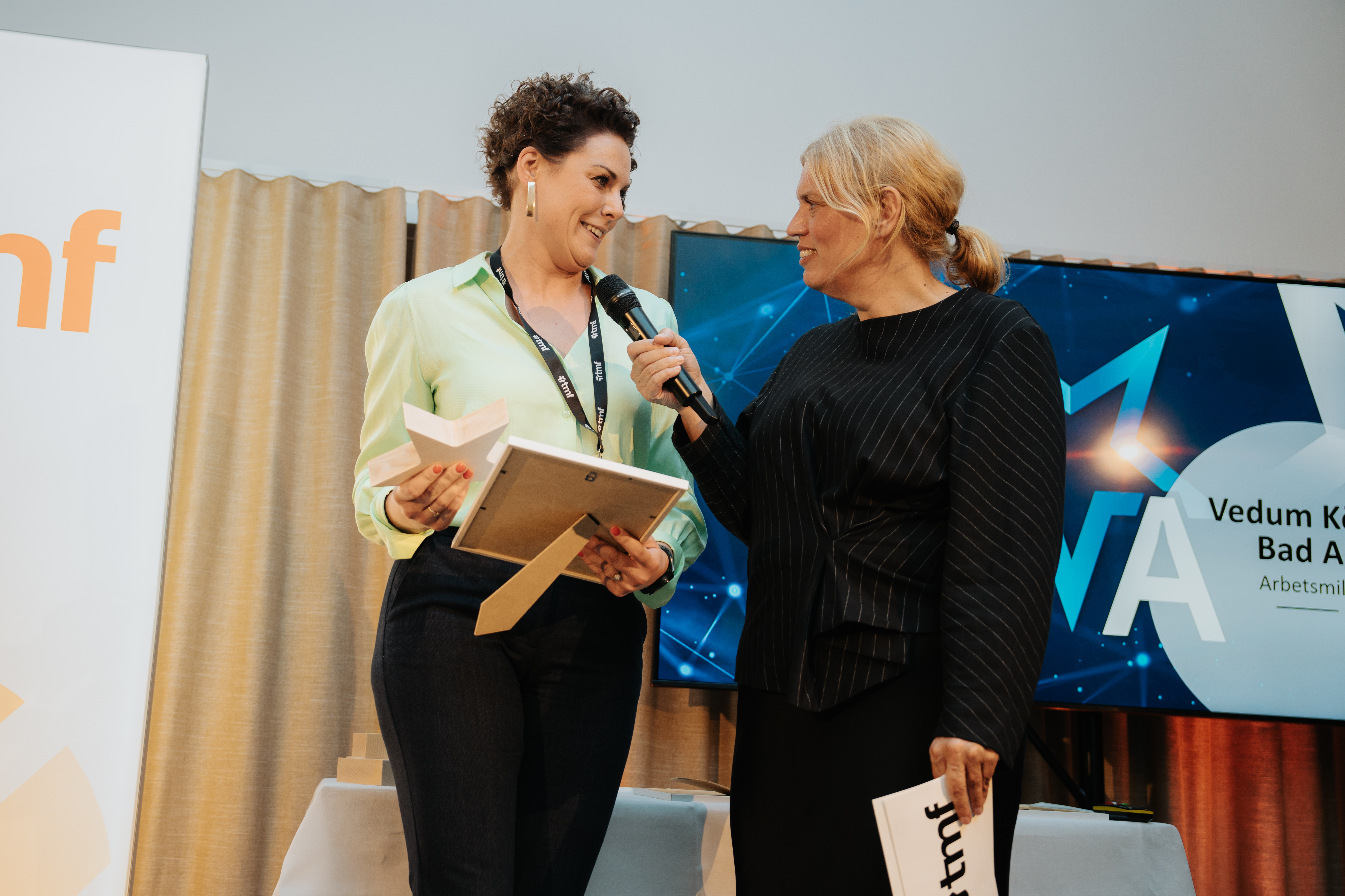 Sofie Bäckman, HR-chef på Vedum, fanns på plats för att ta emot priset::