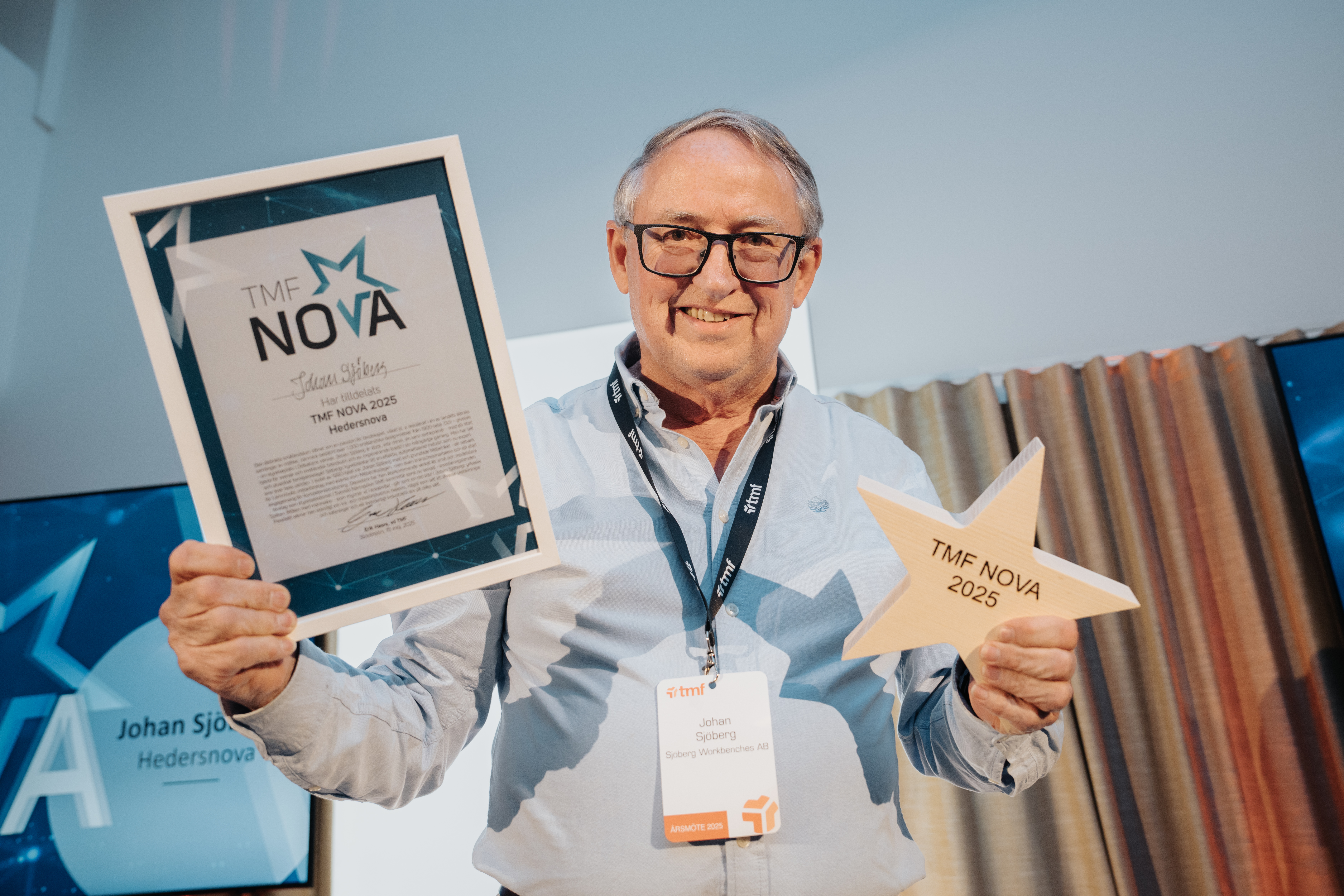 På Trä- och Möbelföretagen, TMF:s årsmöte mottog Vedum, Derome och Mizetto TMF:s Novapris i kategorierna Arbetsmiljö, Teknisk innovation respektive Tillväxt och export. TMF, Trä- och Möbelföretagens Hedersnova går 2025 till den småländske möbelentreprenören Johan Sjöberg.