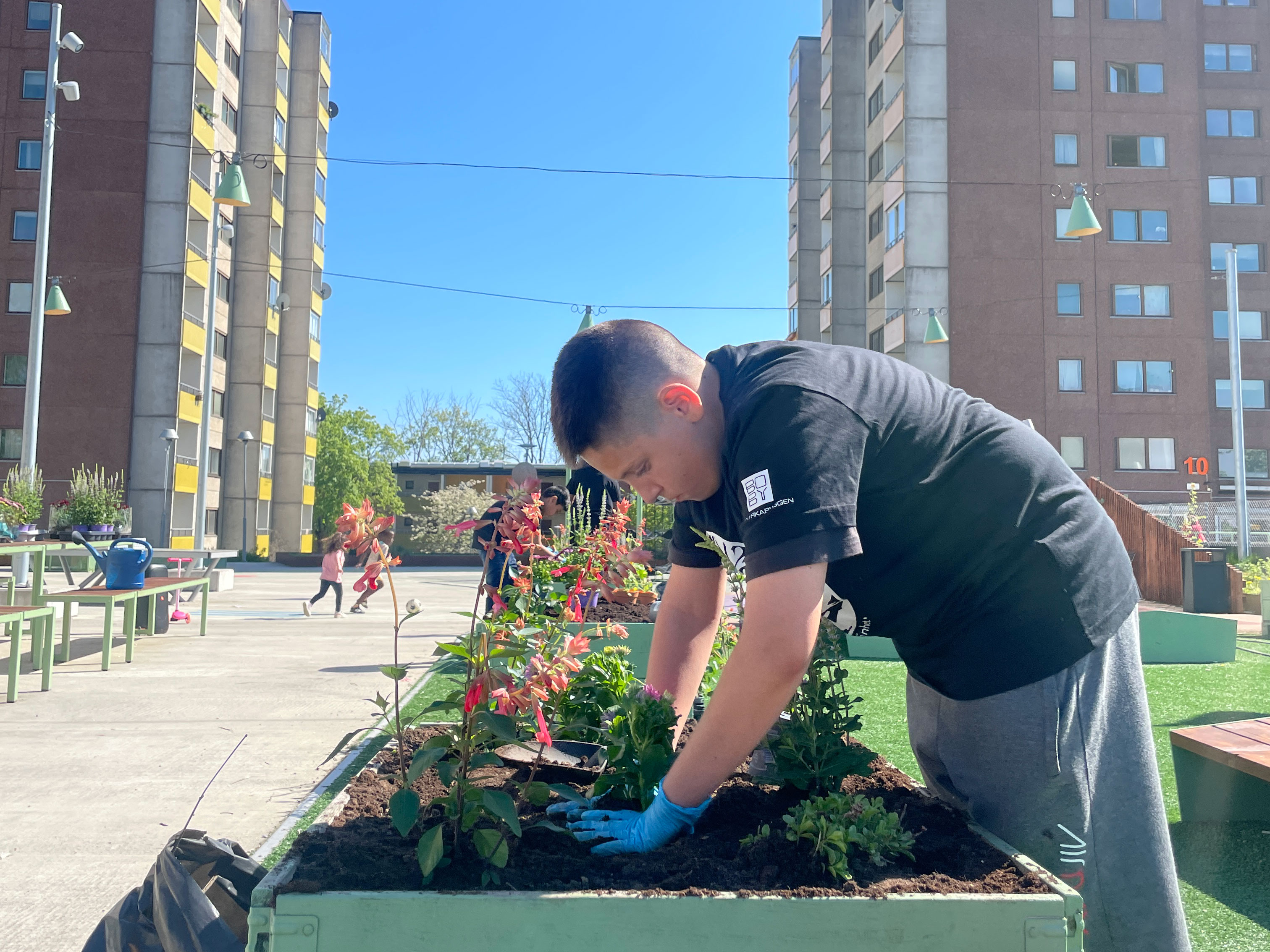 Tigrarna planterar i Regnbågsparken (bredd och höjd) Foto: Botkyrkabyggen