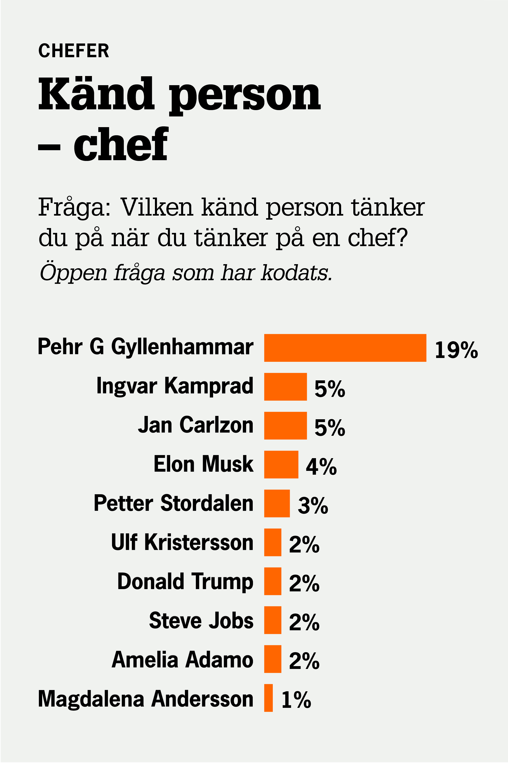 Ledarna har låtit Novus ställa frågan om vilken känd person de tänker på när du tänker på en chef. Drygt 1500 personer har svarat på frågan varav 1008 är chefer.