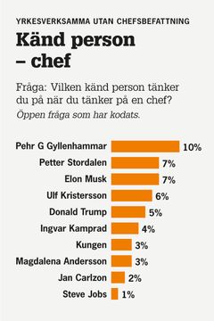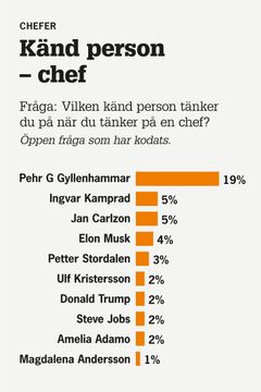 Ledarna har låtit Novus ställa frågan om vilken känd person de tänker på när du tänker på en chef. Drygt 1500 personer har svarat på frågan varav 1008 är chefer.