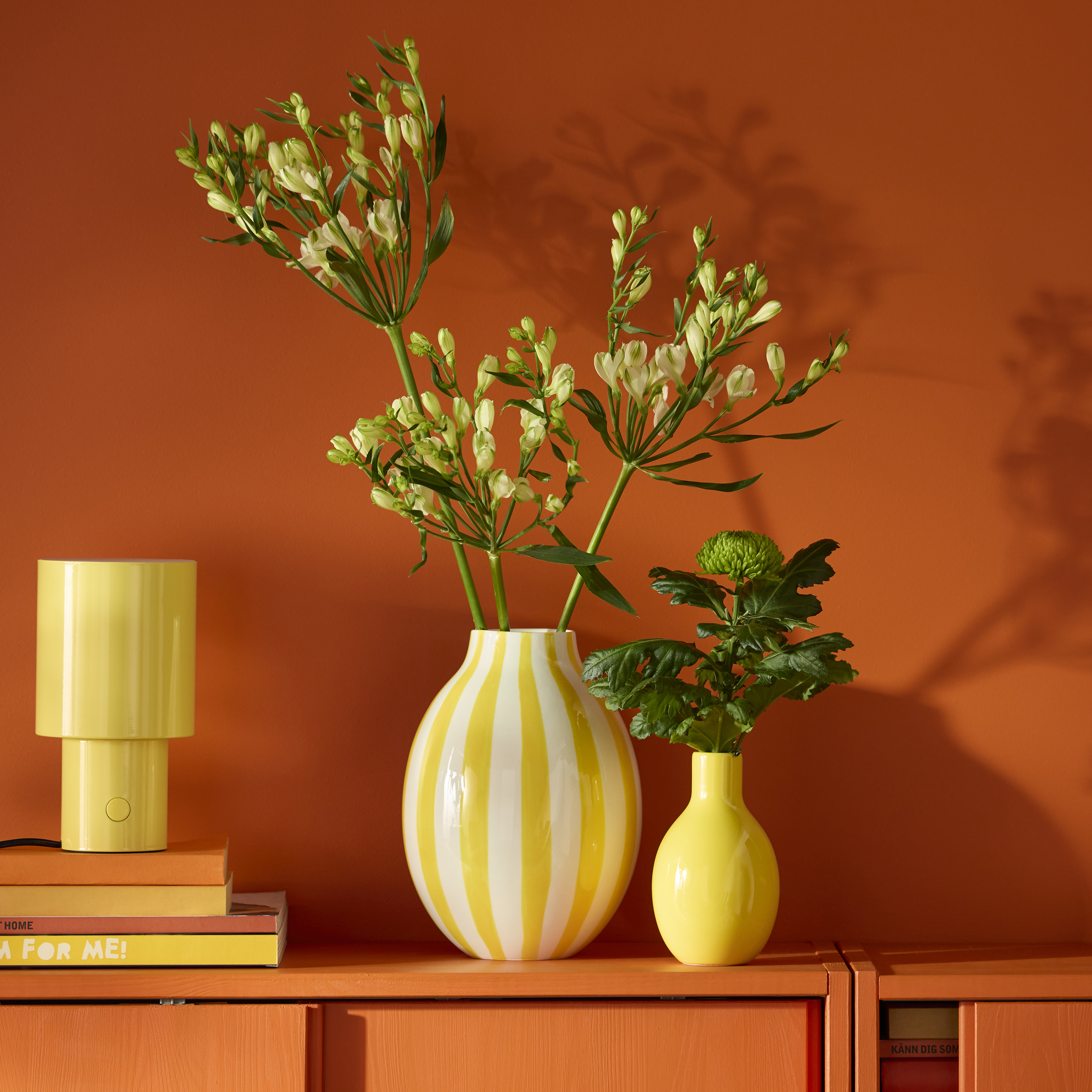 Säg ja till färg! Den här säsongen kan du omfamna den mest lekfulla sidan av den skandinaviska stilen och fylla ditt hem med livliga färger och mönster med spännande kontraster. Kombinera vågmönstret på ditt påslakan med ett geometriskt rutmönster på mattan och öka mysfaktorn med ljuset från en dekorativ bordslampa och en färgglad Bluetooth-högtalare.