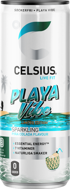 Nu släpper CELSIUS årets sommarsmak för 2025 – CELSIUS® PLAYA VIBE™. Med en tropisk energikick och en uppfriskande smak av solmogen ananas och läskande kokosnöt bjuder CELSIUS på en fräsch twist av den klassiska Piña Coladan. Med varje klunk drömmer du dig bort till ett blått hav, varm sand under fötterna och en lätt bris genom palmerna.