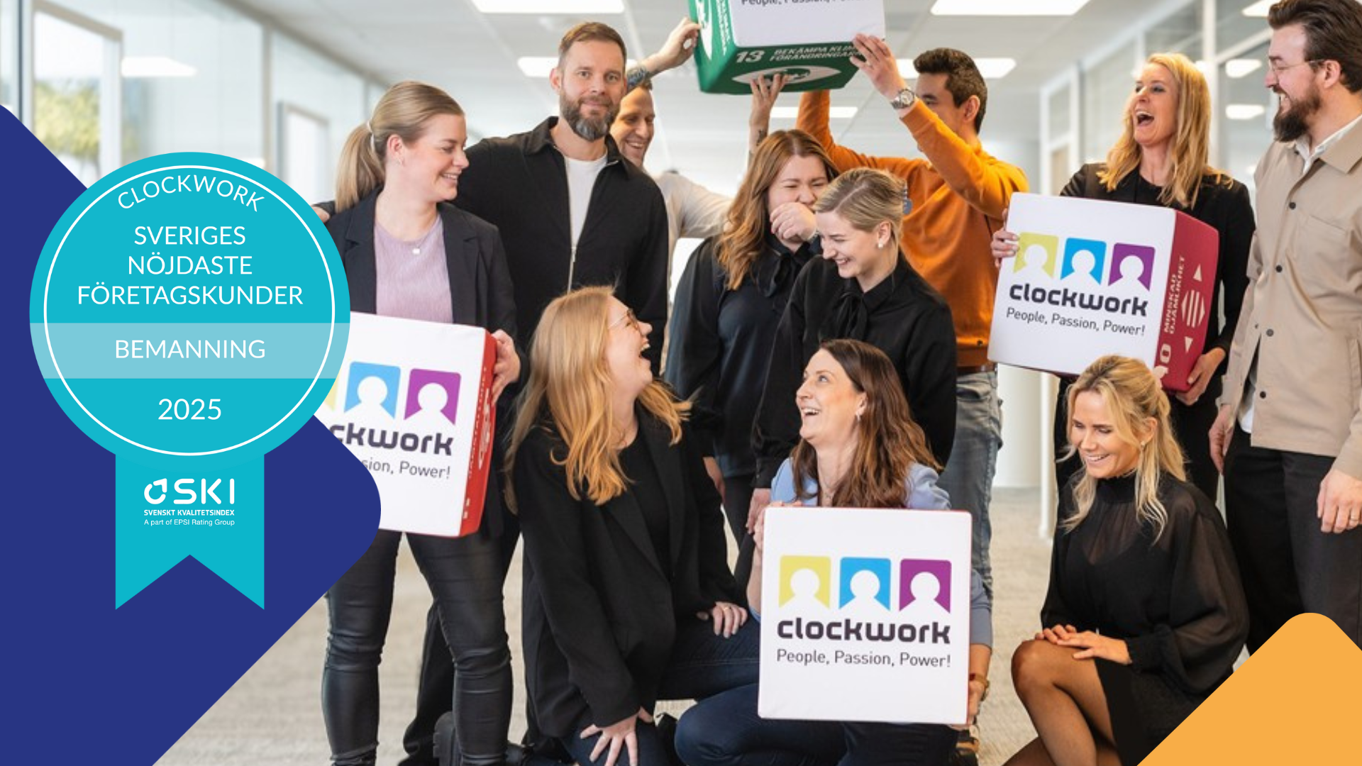 Vi har dubbla anledningar att fira men framför allt en anledning att känna stolthet. För tredje året i rad har vi fått ett kvitto på att vi är något på spåren. Enligt Svenskt Kvalitetsindex är Clockwork det mest hållbara företaget i vår bransch, sett genom kundernas ögon. Det handlar om hur vi agerar, varje dag. Om hur vi möter människor, skapar möjligheter och gör skillnad på riktigt. Det handlar om att stå för något. Och stå kvar. Det handlar om det vi gör tillsammans!