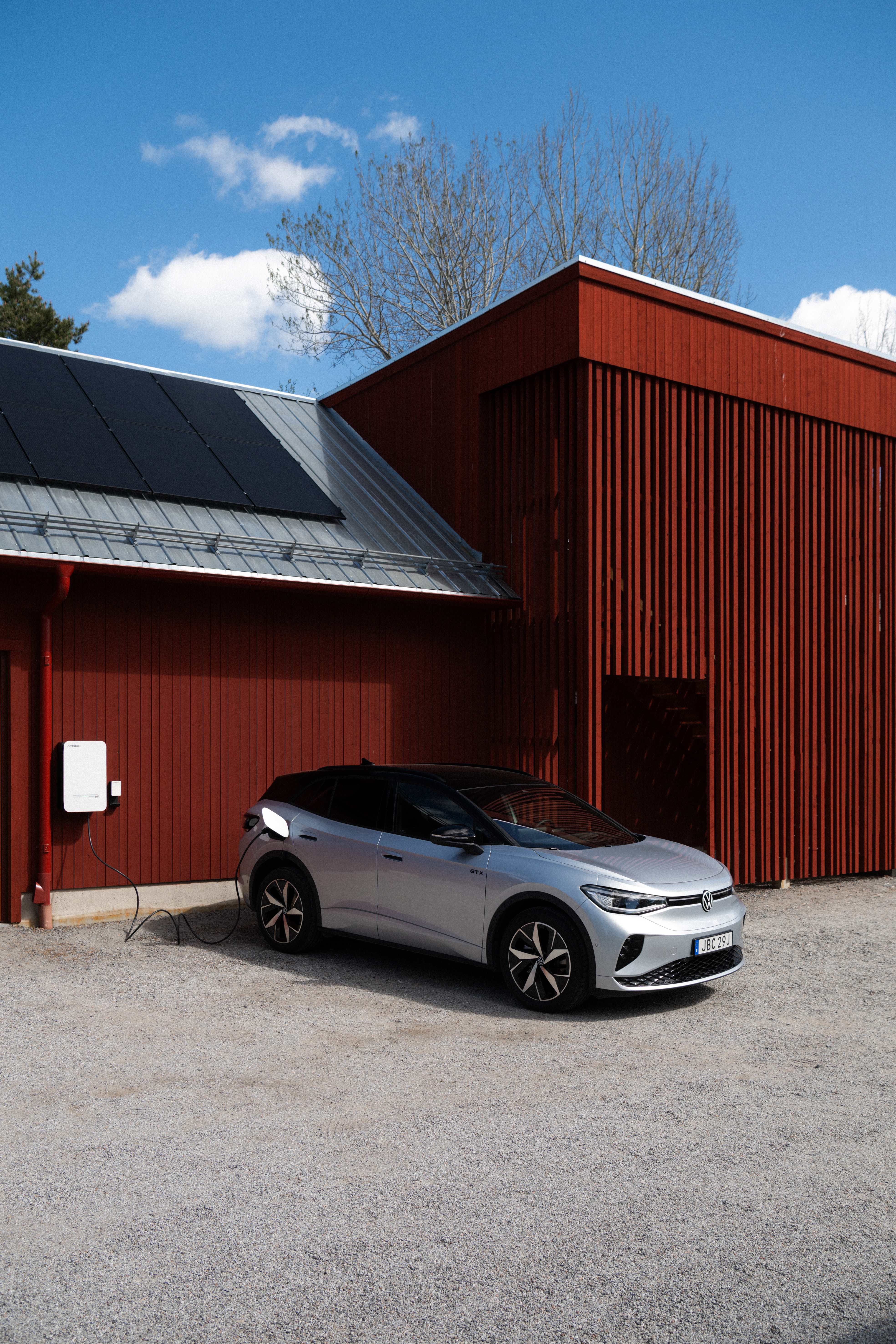 Batteriet i en ID.-bil innehåller mycket mer energi än den som krävs för daglig körning. Den genomsnittliga bilresan i Sverige är cirka 31 km/dag (källa: Trafikanalys) och med en förbrukning under 20 kWh/100 km innebär det ett rejält överskott. Ett överskott som kan användas bakom elmätaren för att sänka de egna energikostnaderna, till exempel genom att kapa förbrukningstoppar.