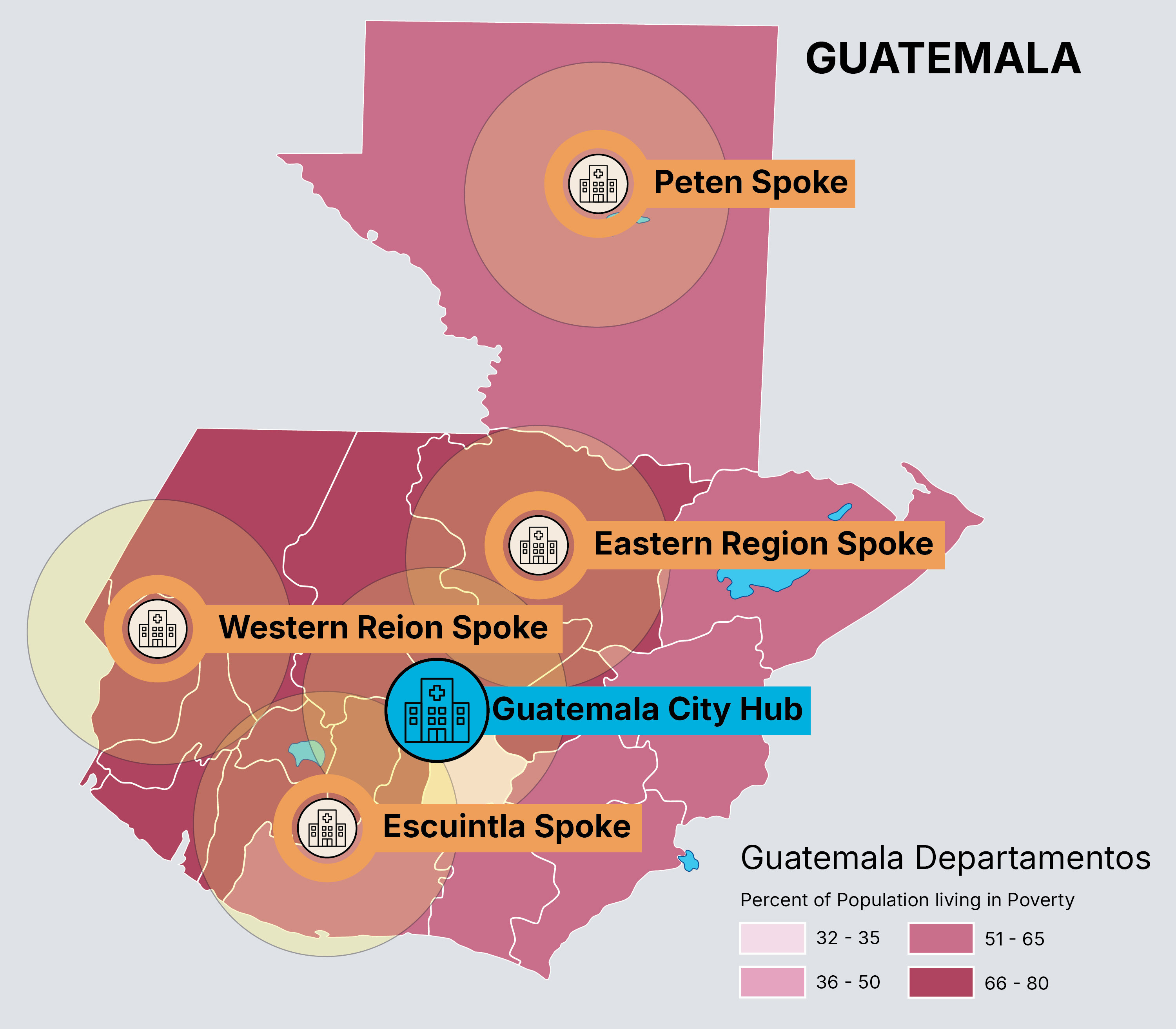 Operation Smile har sedan starten 1982 jobbat för att öka tillgången till kirurgi. De 100 kirurgiska team man nu ska utbilda ska få specialistkompetens, nödvändig utrustning och förbättrad vårdinfrastruktur – och därmed förutsättningar för att själva utföra livsavgörande operationer. Allt görs enligt modellen hubs and spokes – nav och ekrar – där varje land, initialt, i snitt får ett (1) nav (ett storsjukhus med avancerad vård) med tre ekrar (distriktssjukhus som ska erbjuda 37 av 44 livsnödvändiga kirurgiska ingrepp*). Viktig kirurgisk vård för närmare 500 miljoner människor blir tillgänglig inom två timmars resa från deras hem. Operation Smiles kärna är som tidigare läpp-käk-gomspalt och teamen kommer att ha specialistkompetens inom just spaltkirurgi, men samtidigt vara rustade för att ta emot tusentals patienter med andra kirurgiska behov. Att utbilda och rusta ett komplett spaltteam tar runt tre år.