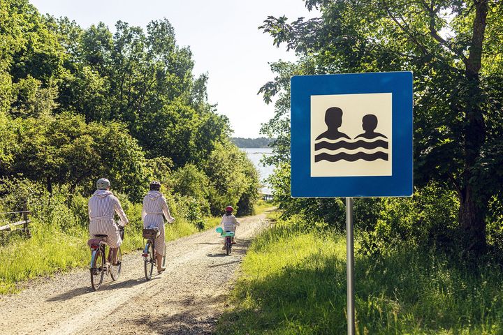 Trots riskerna med att bada ensam illustrerar skylten som visar vägen till badplatser längs landsvägarna bara en person. För att sätta stopp för ensambadarna lanserar Trygg-Hansa nu ett initiativ till en ny skylt – en skylt som visar två personer som badar. En skylt som ska påminna oss om att uppsikt räddar liv och att det därför är så viktigt att vi badar tillsammans.