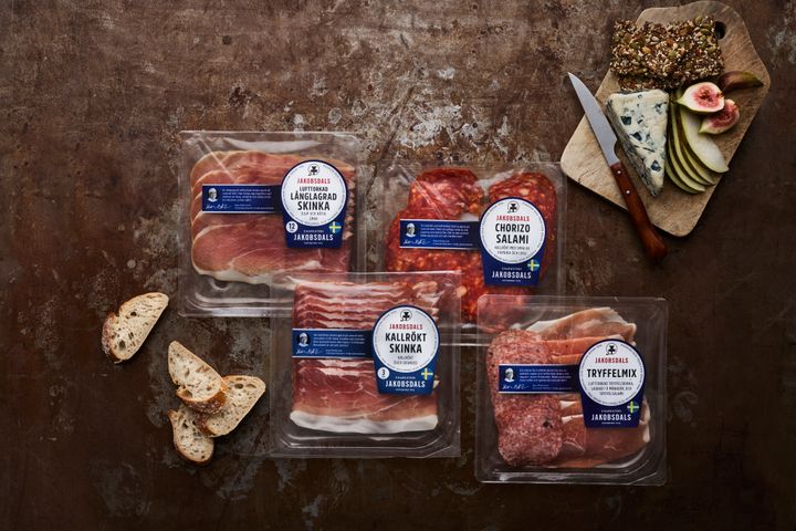 – Vi har ett unikt sortiment av lufttorkade charkuterier som tillverkas i Sverige – gjorda uteslutande på svenskt kött. Det vill vi nu visa upp på ett tydligare och mer tilltalande sätt genom att presentera sortimentet i en ny design, säger Frida Engström, marknadschef på Jakobsdals Charkuteri.