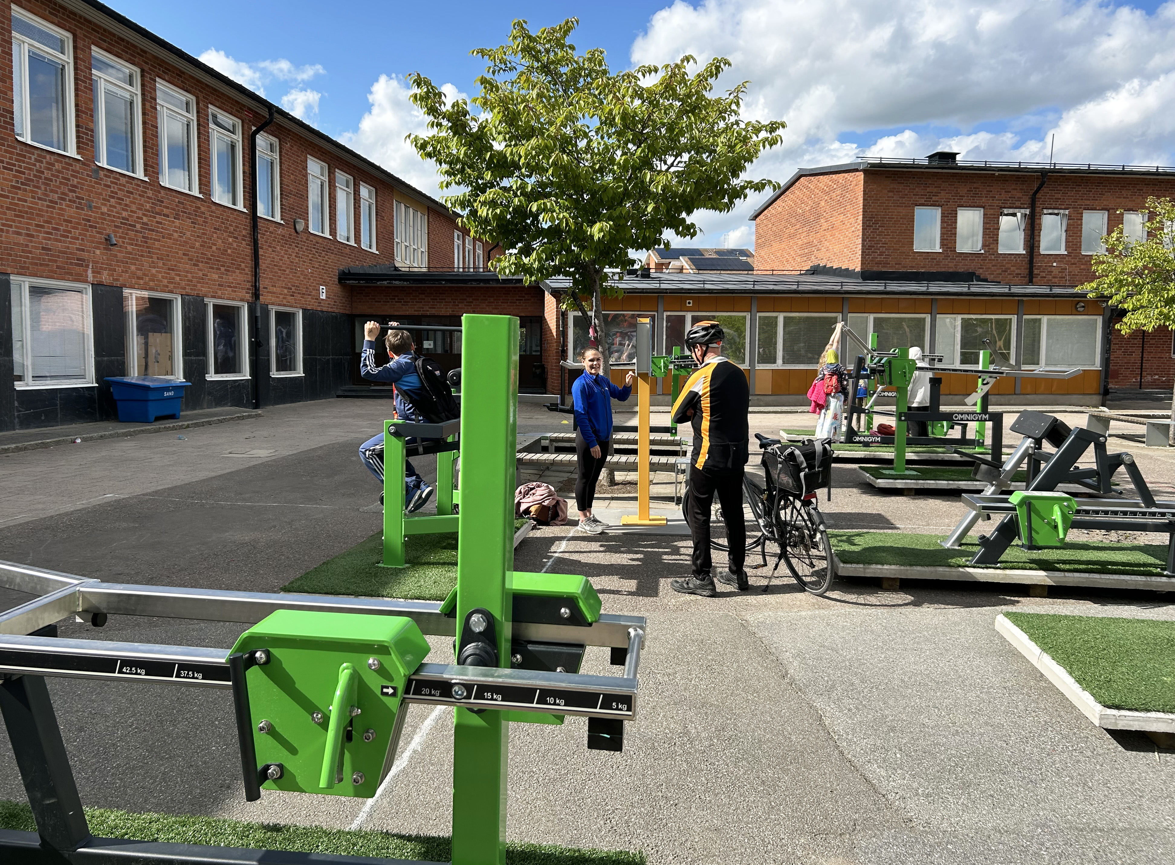 På Pop-up gården finns ett nymonterat utegym från företaget Omnigym (foto: Skolfastigheter).
