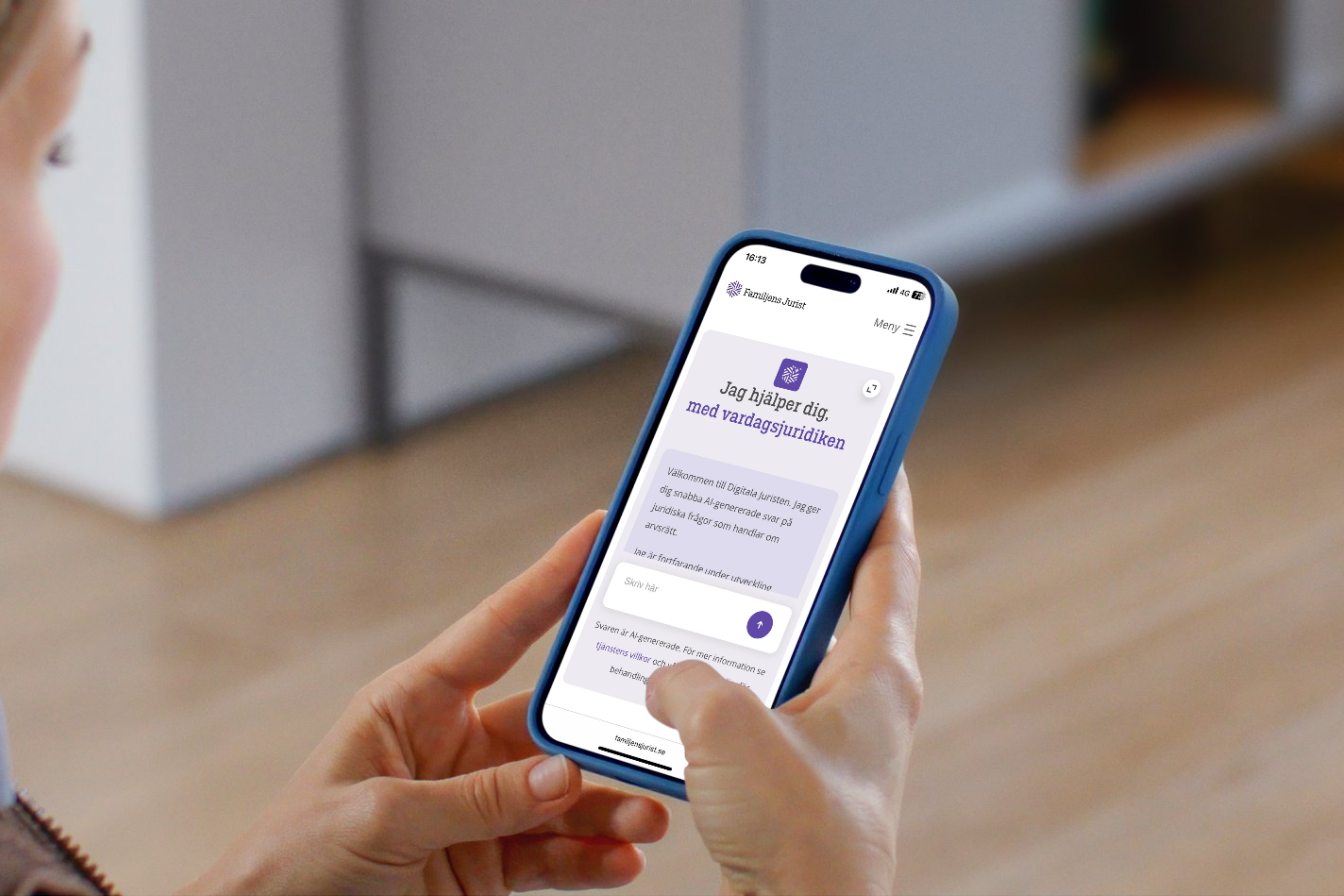 Digitala Juristen är öppen för alla som söker juridisk vägledning – lättillgängligt, kostnadsfritt och tryggt. Nya rättsområden kommer att inkluderas löpande, i höst tillkommer bodelning och separation, för att användarna ska kunna få svar på sina frågor om bland annat vårdnad, boende och separation. Tjänsten finns tillgänglig på www.familjensjurist.se/digitala-juristen.