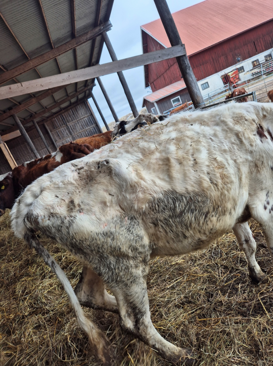 I länsstyrelsens protokoll står också: ”Av de 21 djur som veterinärundersöktes i slutet av mars 2025 bedömdes 18 djur vara kraftigt avmagrade med ett hullpoäng från 1-1,5 på en femgradig hullbedömningsskala (…). En ko med hullpoäng 1 är allvarligt undernärd och i dåligt skick. Benstrukturen är mycket framträdande genom att revben, ryggrad, höftben och sittbensknölar tydligt sticker ut och saknar fettöverdrag (…)”.