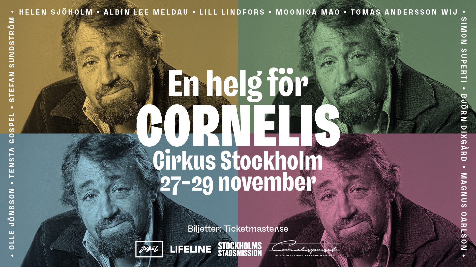 Aldrig tidigare har Cornelis Vreeswijks konstnärskap hyllats i en sådan skala. Den 27–29 november 2025 samlas några av Sveriges mest älskade artister på Cirkus i Stockholm för att hedra poeten, provokatören och romantikern Cornelis – i ord, musik och anda.