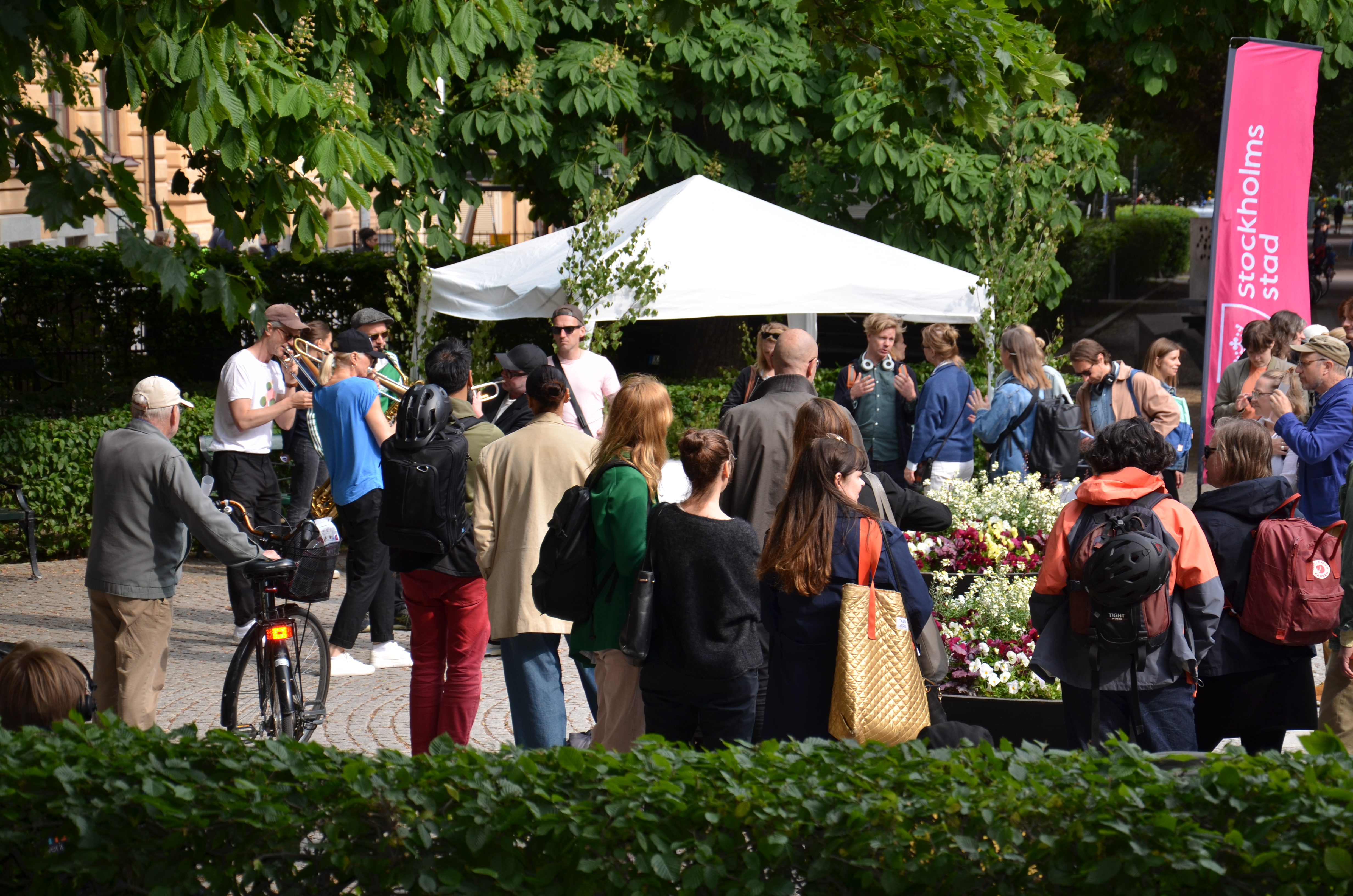 Gunilla Glantz, trafikdirektör, och Lars Strömgren, trafkborgarråd, öppnade stadsmiljözonen och staden bjöd på rosa alkoholfritt bubbel och popcorn. En dragsspelstrio från Kulturskolan Stockholm och bandet Fri Luft XL bjöd på musik och underhållning på ett grönskande Greta Garbos torg medan en lokal marknad bredde ut sig i allén på Katarina Bangata. På plats i allén fanns även ett informationstält där intresserade kunde ställa sina frågor om stadsmiljözonen och komma med synpunkter och idéer inför framtiden.