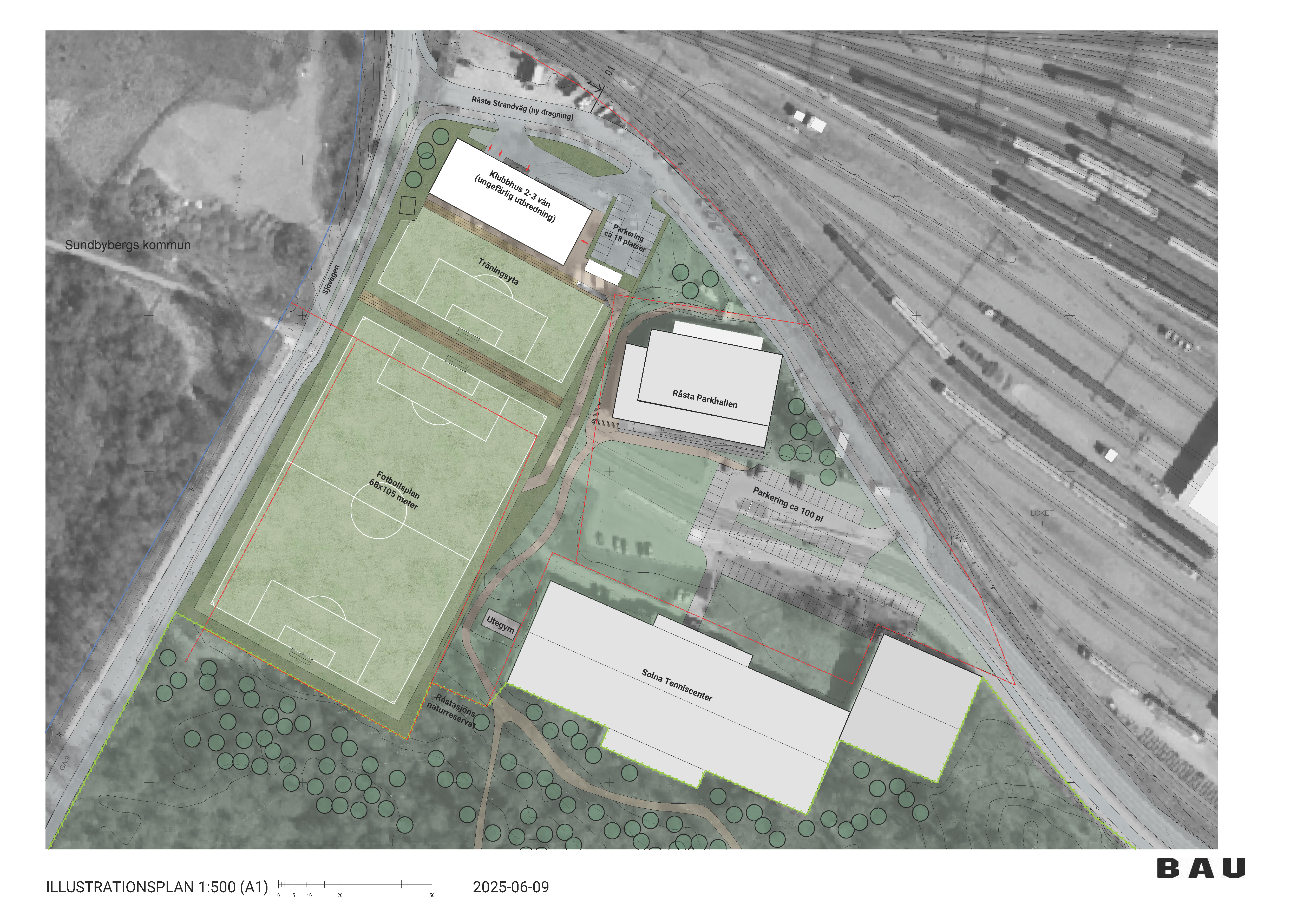Anläggningen planeras i anslutning till Råstaparkhallen och kommer att innehålla en fullstor fotbollsplan med tillhörande träningsyta samt ett klubbhus. Den ursprungliga planen var att bygga träningsanläggningen vid Råstasjöns IP, men efter utredningar konstaterades att markförhållandena skulle göra byggprocessen både dyr och tidskrävande. Därför har parterna i stället enats om att gå vidare med att utreda en ny plats vid Råstaparkhallen som även bedöms ge lägre miljöpåverkan.
