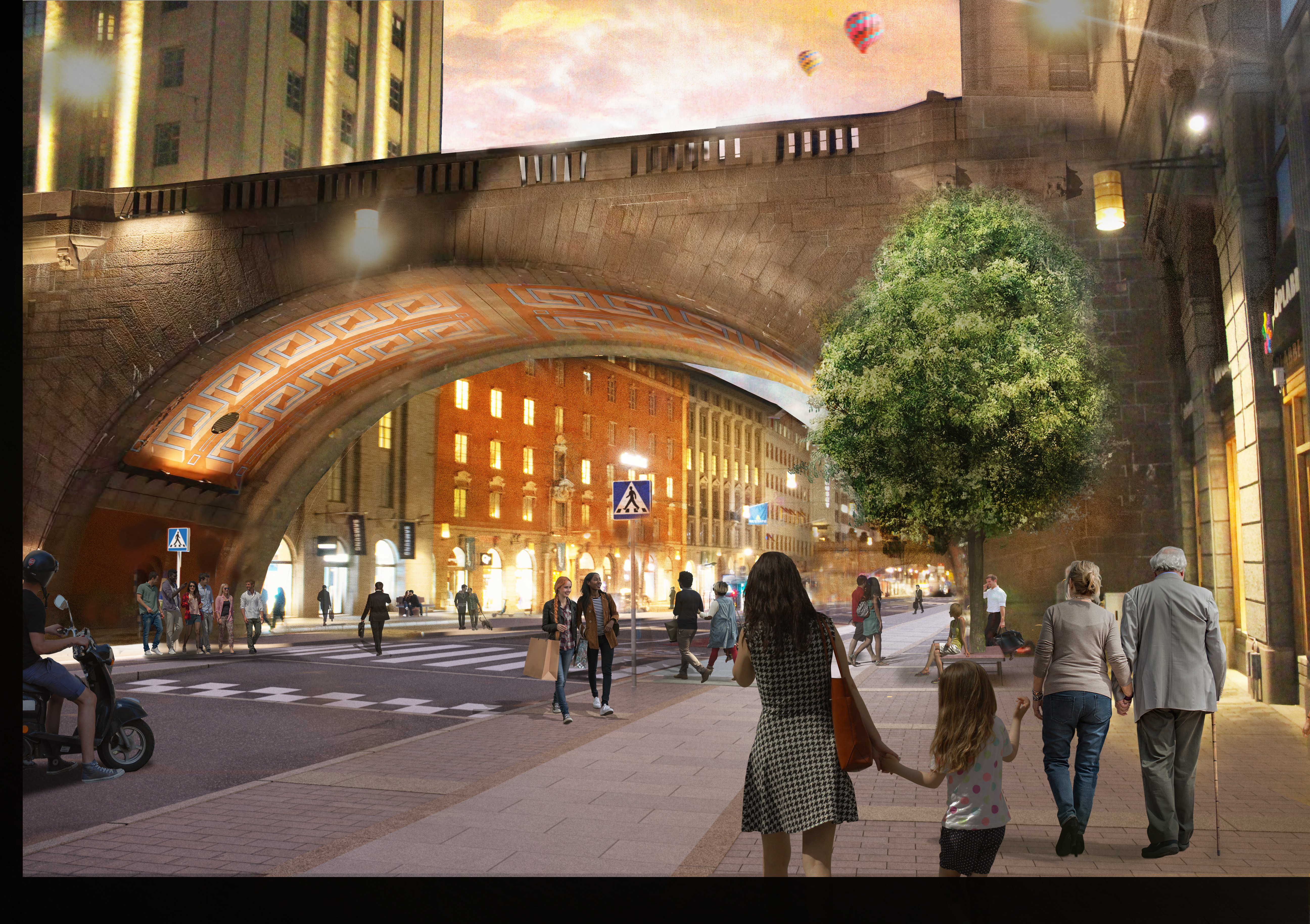 - Broarna över Kungsgatan blir belysta så att deras form och utseende lyfts fram.