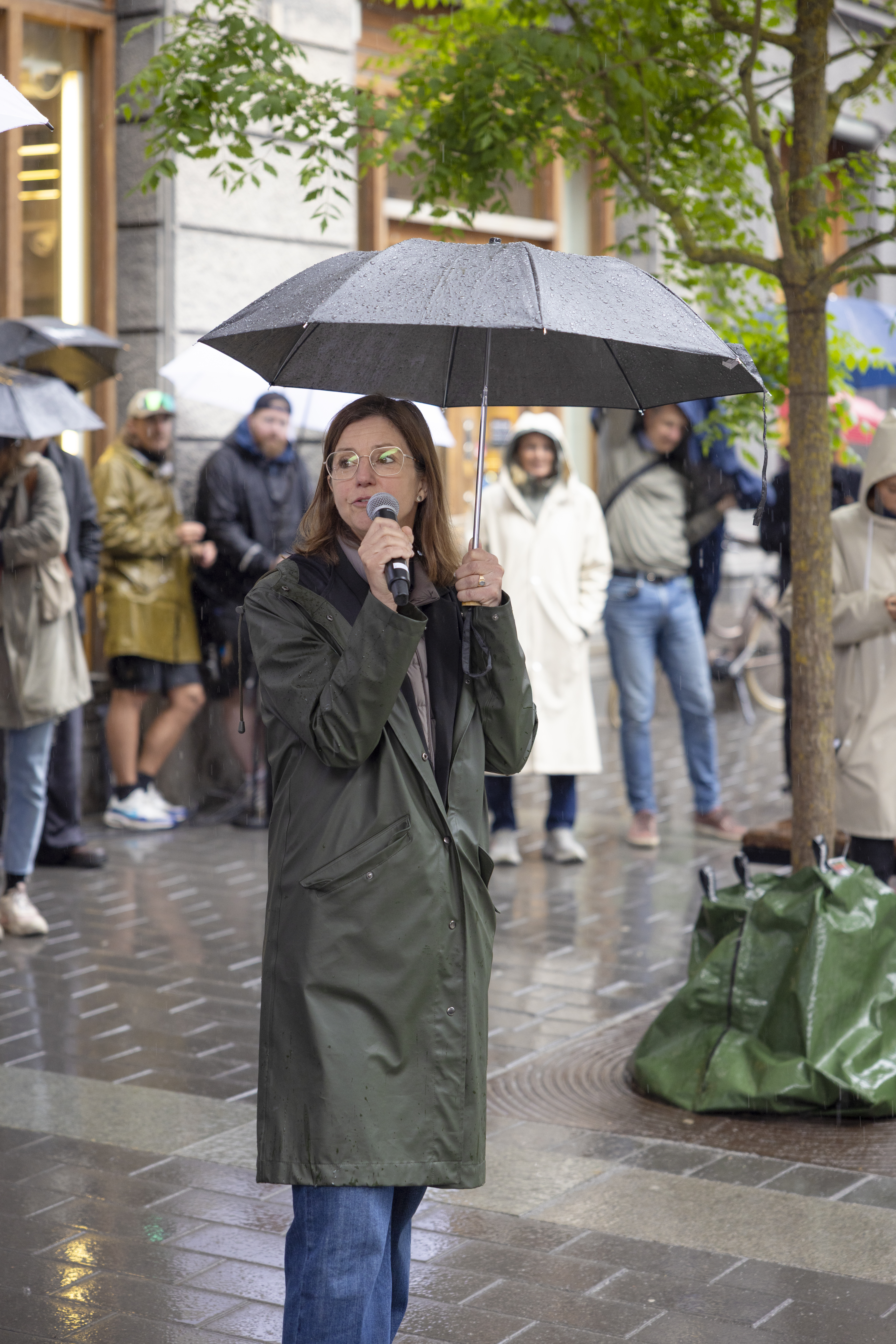 På plats vid dagens invigning fanns stadens trafikdirektör Gunilla Glantz, trafikborgarråd Lars Strömgren, chef för Stockholm konst Eleonora Fors Szuba, konstnären Linnea Rygaard som har gjort gatans nya konstinstallation samt Monica Bruvik, vd för City i Samverkan.