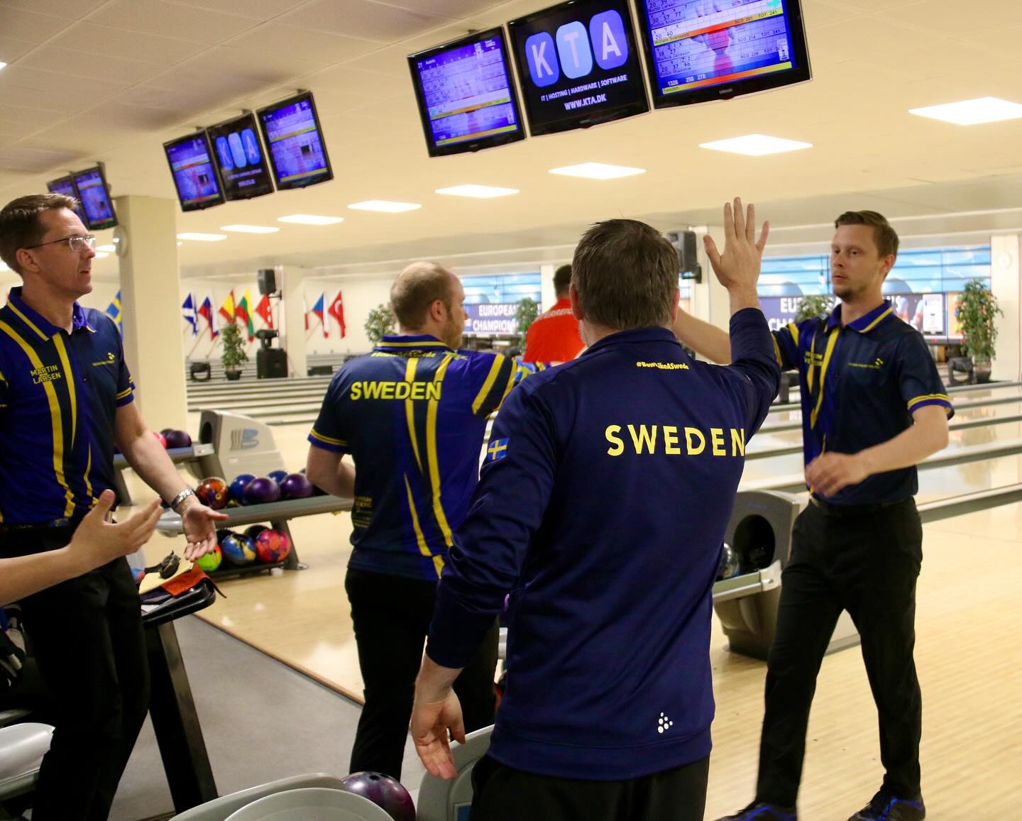 Igår inleddes lagdistansen vid EM i Ålborg. Sverige intog banorna under torsdagseftermiddagen i squad 2. Blågult inledde med 1048 poäng i den första serien. Det ledde till att de placerade sig som tvåa i squad 2 efter Italien som var i topp. I den andra serien fick Sverige ihop 1018 poäng samtidigt som Italien hade problem och Sverige avancerade till första plats i squad 2. I den tredje serien stötte blågult på ett kämpigt banpar vilket ledde till 916 poäng. Ukraina slog 1080 i serie tre och passerade Sverige i squad 2. Blågult är totalt på fjärde plats i kvalet med 2982 poäng inför fredagens resterande tre serier.