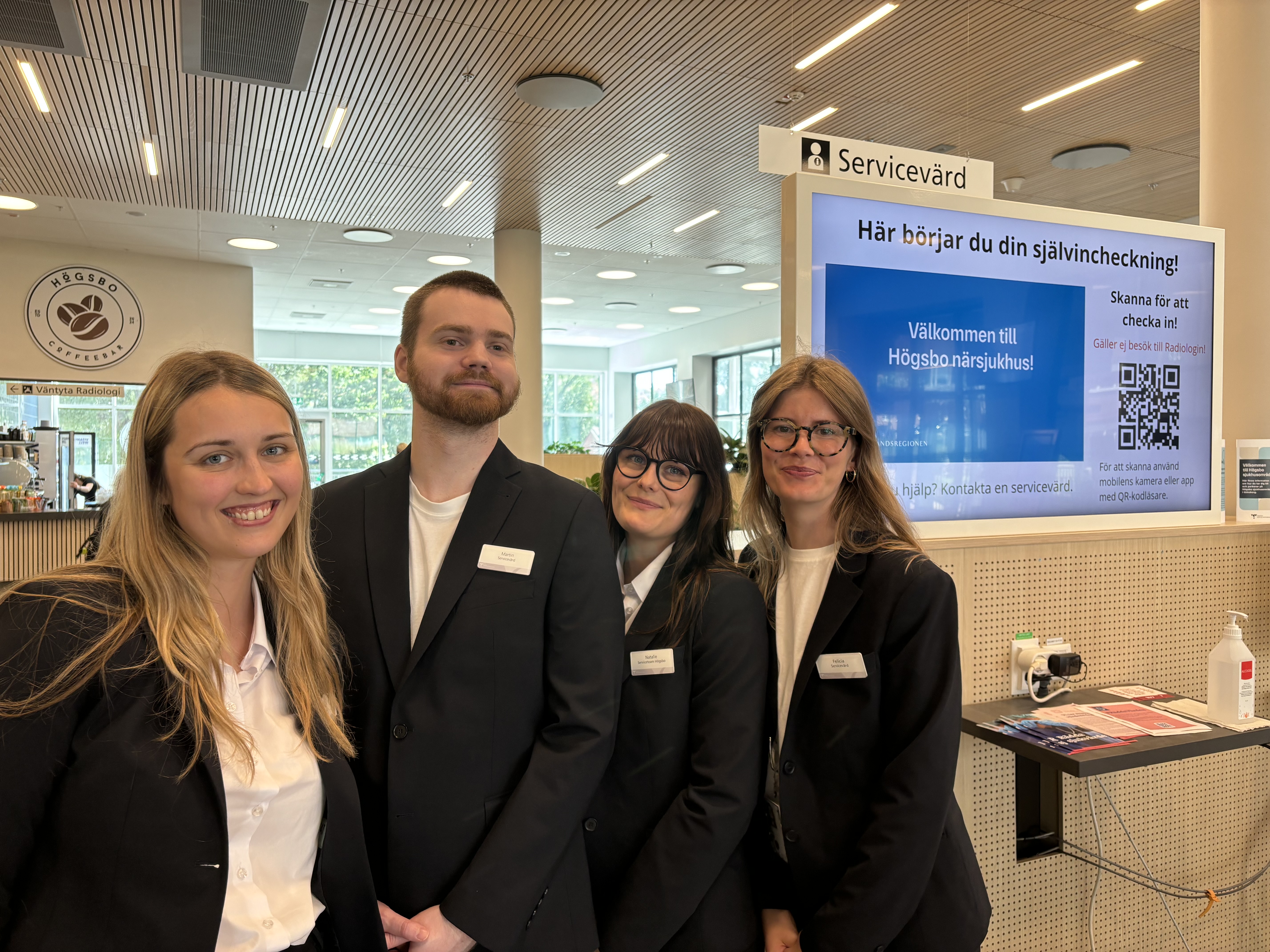På Högsbo närsjukhus väljer nu ungefär 70% av patienterna att använda självincheckning. Responsen är mycket positiv, patienterna uppskattar det smidiga sättet att checka in, och att det finns servicevärdar nära till hands för den som behöver hjälp.