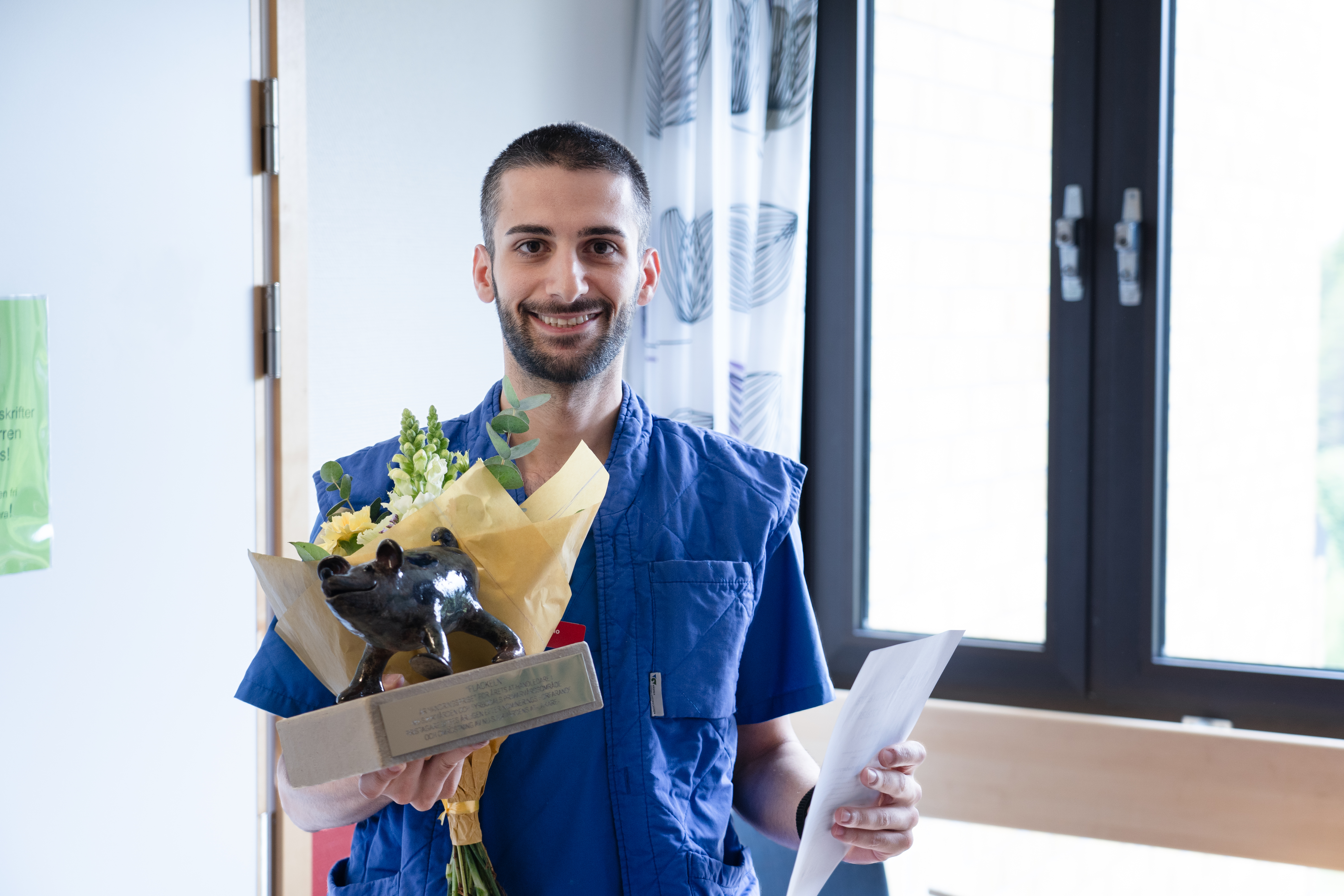 “Med stort initiativ och engagemang ser han till att utbilda AT-läkaren. Ser till att man utvecklas i sina kunskaper, färdigheter och växer i sin roll som läkare med ett mycket bra stöd. Lägger mycket vikt på att man ska känna sig trygg ute i kliniken oberoende på vart man än är i klinikens olika placeringar så finns han alltid tillgänglig och är behjälplig. Detta får en att känna sig mycket trygg, vilket i sin tur leder till en bättre arbetsmiljö och mer patientsäker handläggning.
