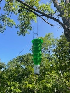 Under projektperioden kommer Skogsstyrelsen, under samordning av SLU, att ansvara för övervakning av smaragdpraktbaggen. Så kallade multitrattfällor har under våren 2025 placerats ut på tre platser där det finns risk att baggen etablerar sig.