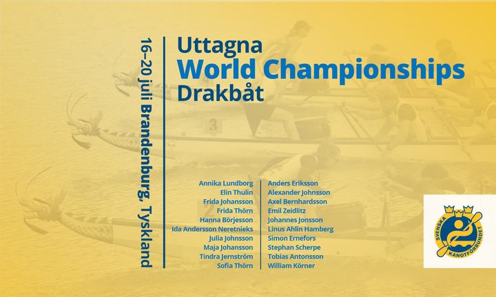 Svenska Drakbåtlandslaget har tagit ut den landslagstrupp som ska få representera Sverige på VM 16–20 juli 2025 i Brandenburg, Tyskland. Stort grattis till uttagningen!