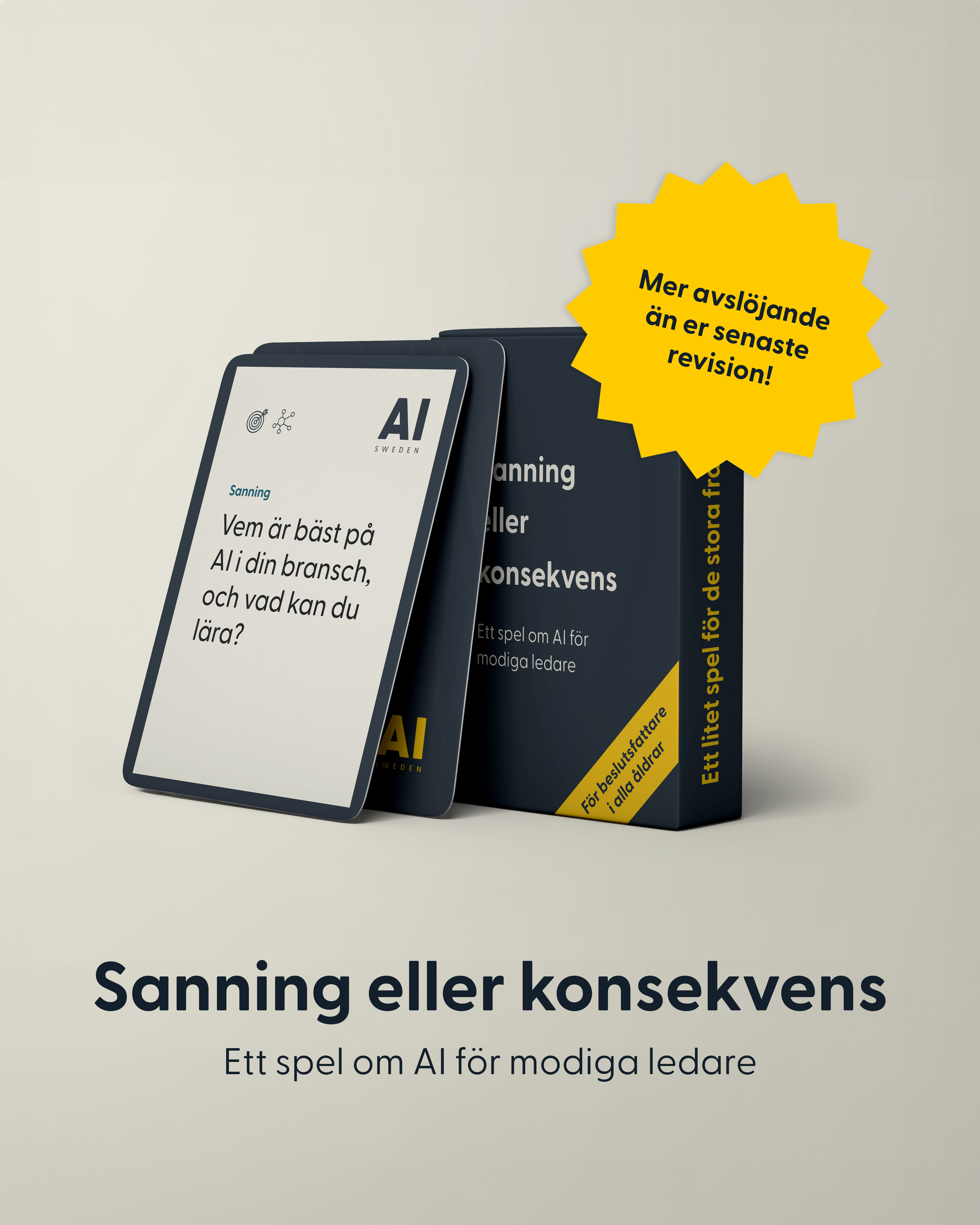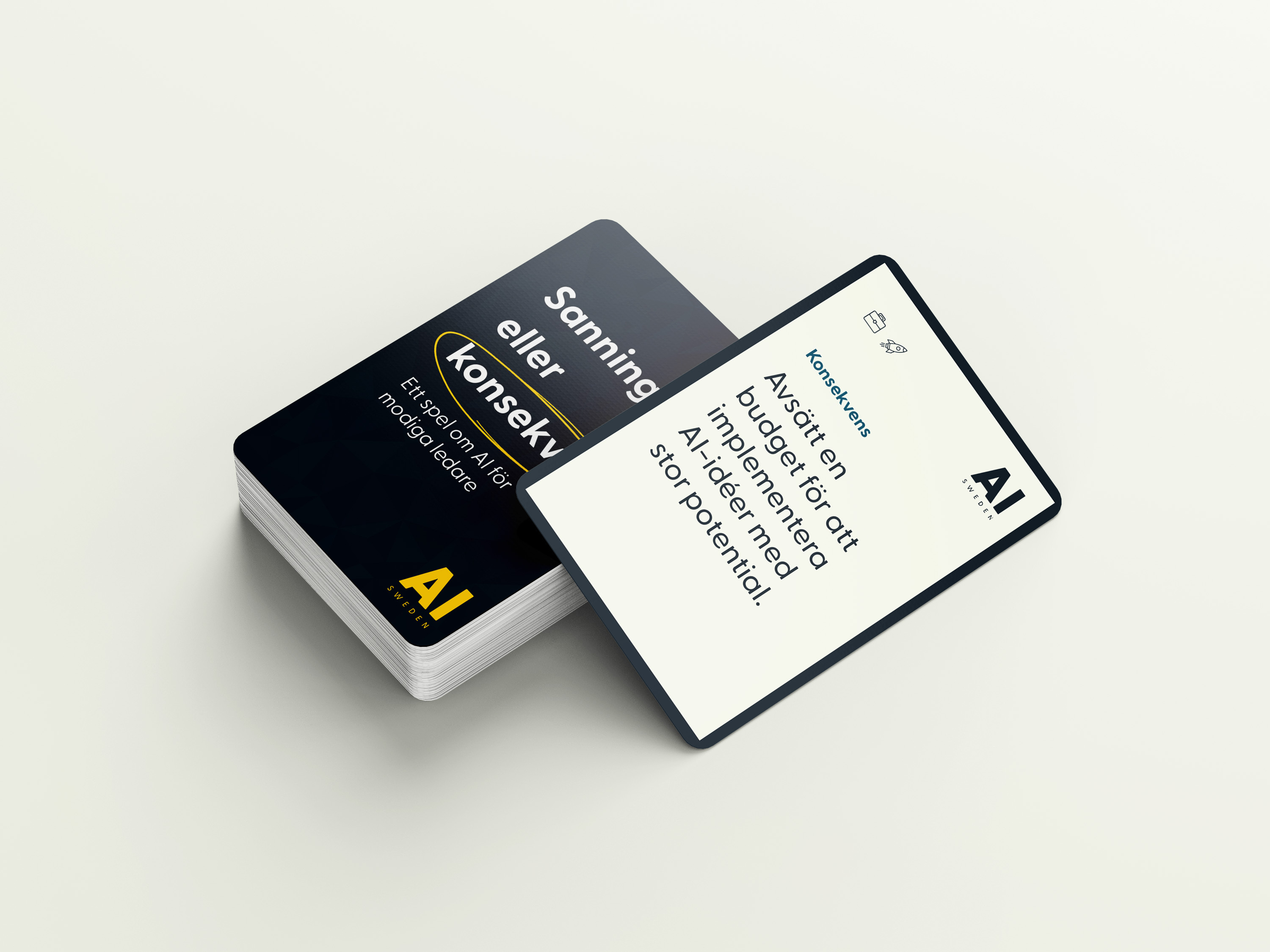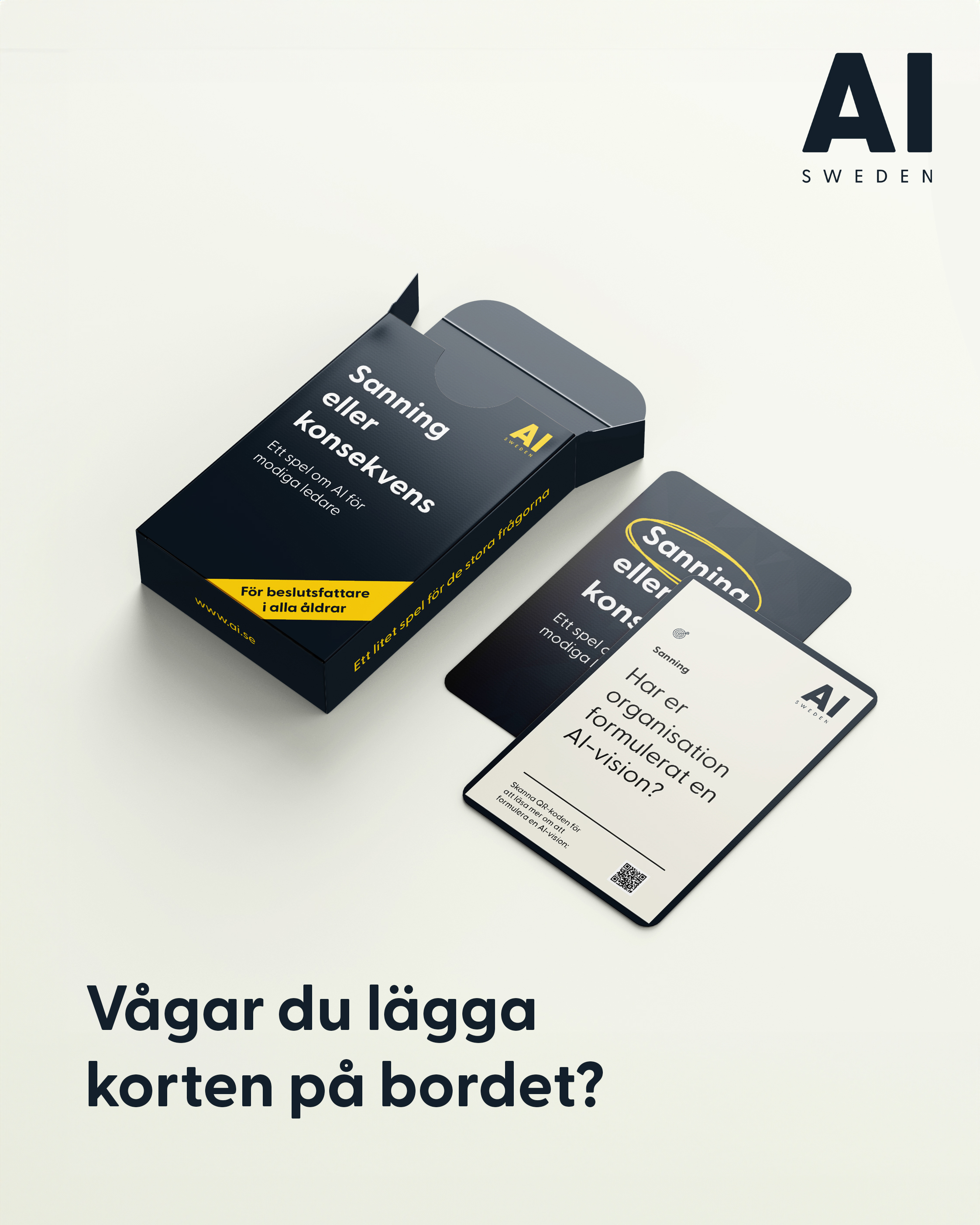 AI Swedens Sanning eller konsekvens består av 51 kort med frågor och utmaningar inom elva centrala kategorier som är avgörande för ett framgångsrikt AI-införande i en organisation. Det handlar till exempel om data, teknik, kultur, användningsfall och expertis. Sanningarna bygger på ett urval av de frågor som AI Sweden använder sig av för att bedöma organisationers AI-mognad. Vissa kort inkluderar en QR-kod med länk till ytterligare resurser för den som vill fördjupa sig mer i ett ämne.