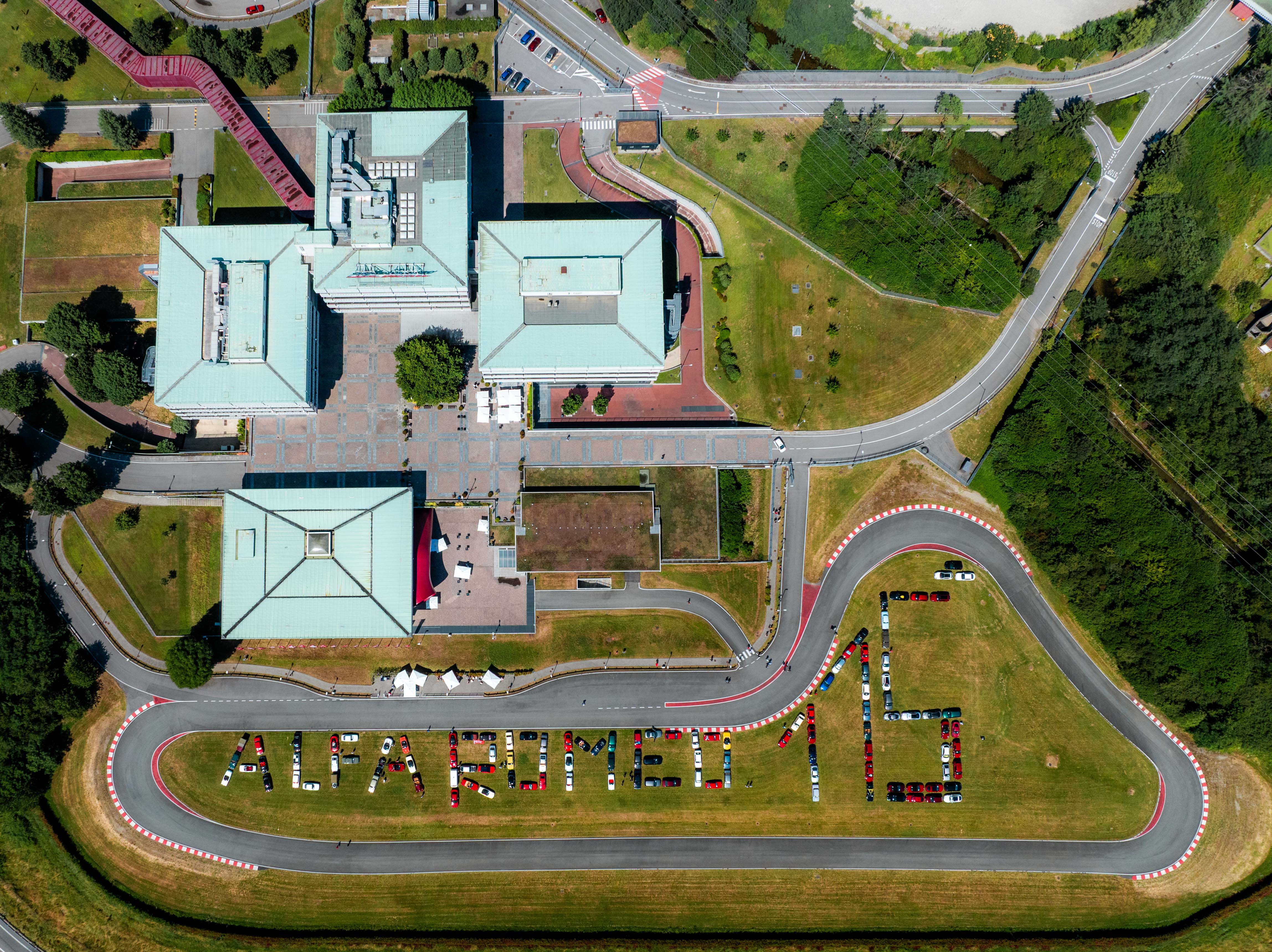 En av dagens mest minnesvärda stunder var en symbolisk flashmob: 115 unika Alfa Romeo-bilar formade texten "Alfa Romeo 115" på museets bana – en kraftfull bild av den passion som förenar Alfisti världen över.