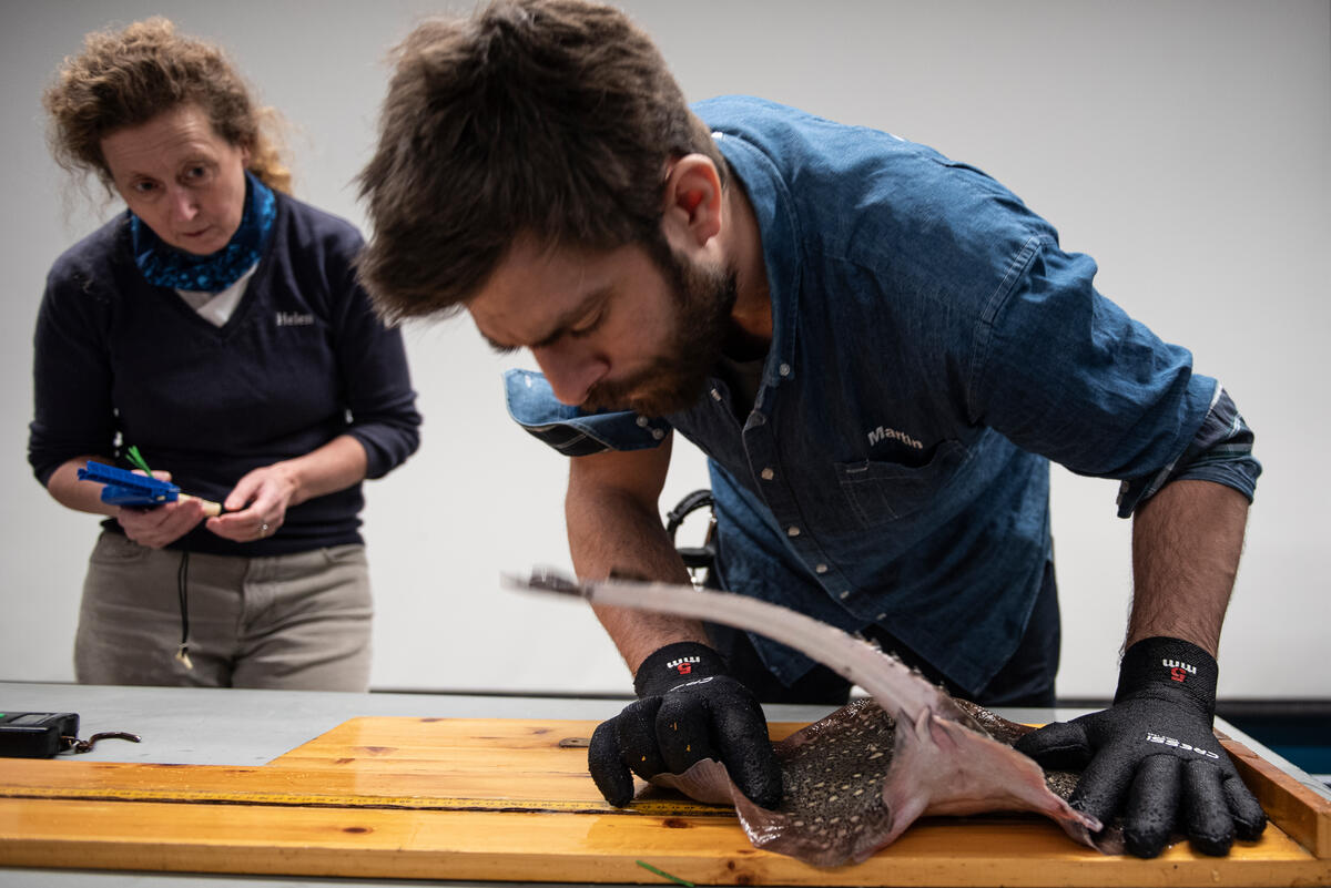 De hajar och rockor som släpps ut har idag har inga sändare på sig men väl en liten grön tag med unikt ID nummer på för eventuell återfångst. Fiskarna får hjälp av dykare från Universeum att komma ner på djupet.