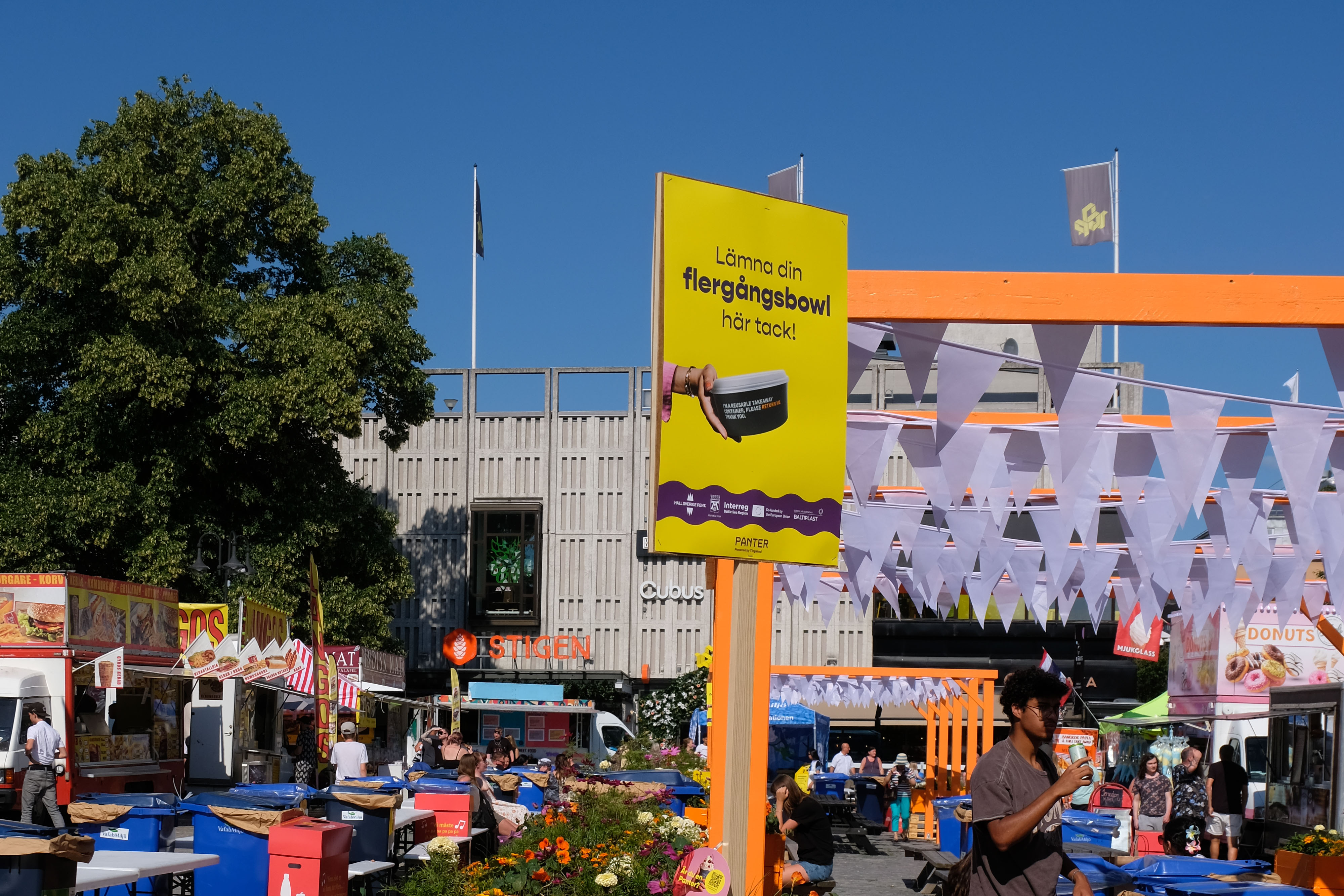 En av de mest synliga förändringarna sker på Stora Torget, där servering nu sker på återanvändbara tallrikar och bowls. Efter måltiden lämnar besökarna tillbaka sin disk i gula returkärl, strategiskt placerade på området. Ett enkelt system som gör både miljön och festivalupplevelsen bättre. Målet är att undvika omkring 12 000 engångsprodukter under festivalens tre dagar.