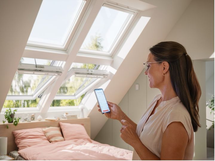 VELUX takfönster och solskydd kan styras automatiskt via app eller sensor. De öppnas och stängs beroende på väder och temperatur, vilket gör att hemmet håller sig svalt utan att du behöver tänka på det.