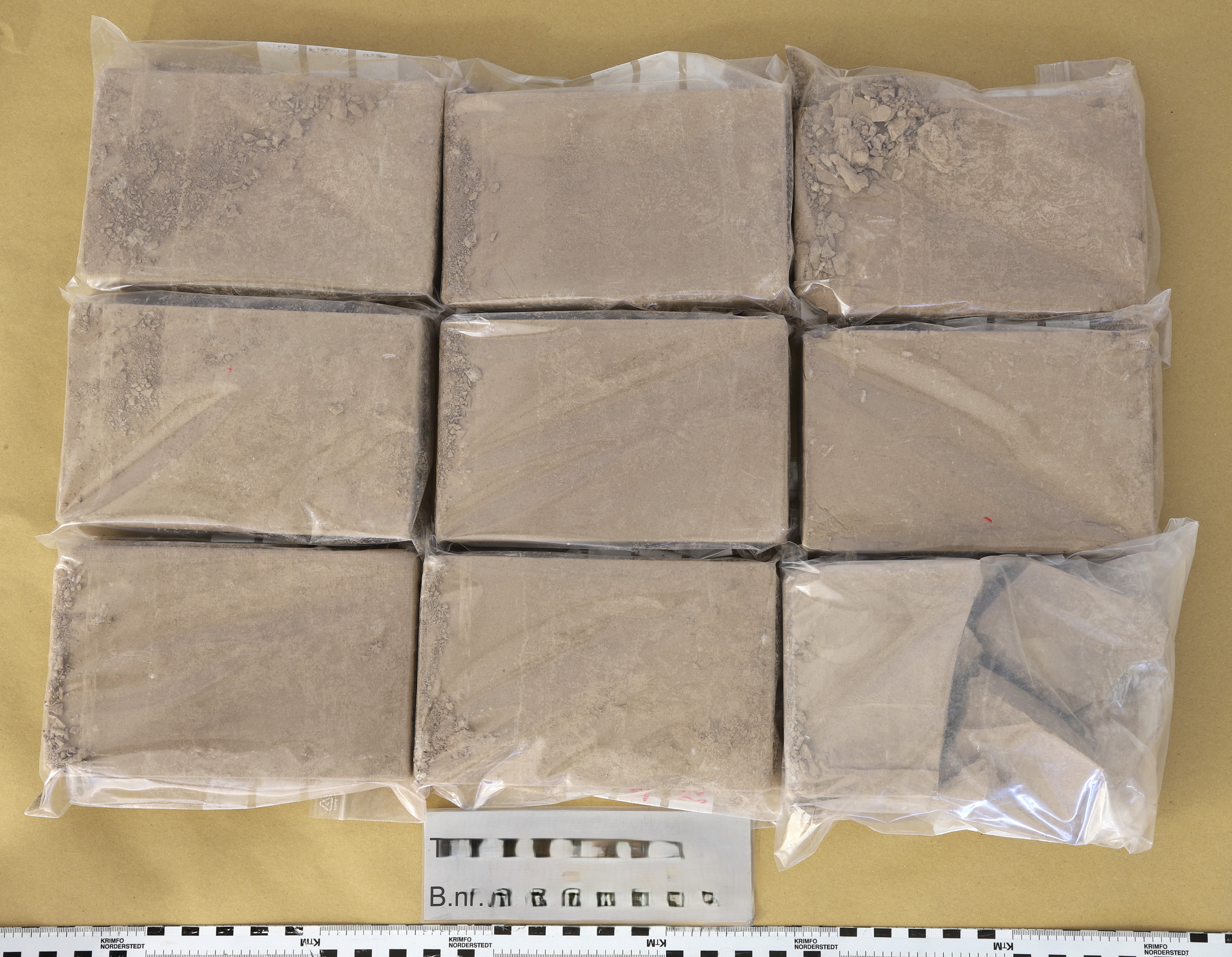 Beslag av 9 kilo heroin som var del av ett större narkotikabeslag i en lastbil med trailer. Beslaget gjordes i slutet av februari i Norra hamnen i Malmö. Foto: Tullverket