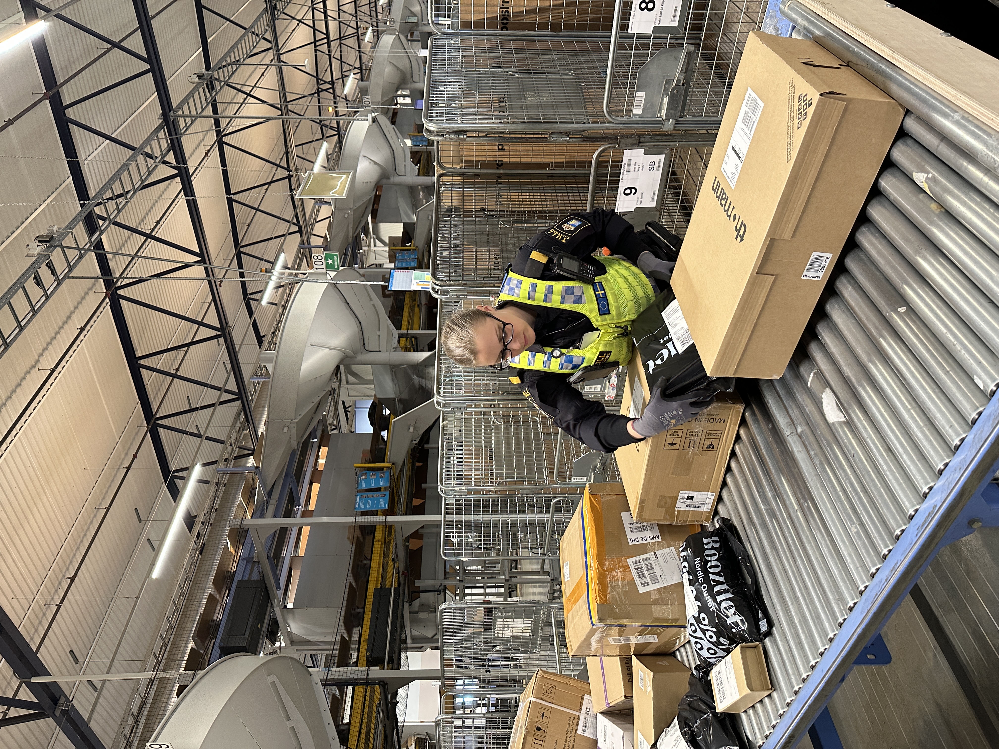 Tullverket utför kontroller i post- och paketflödet i Toftanäs i Skåne våren 2025. Foto: Tullverket