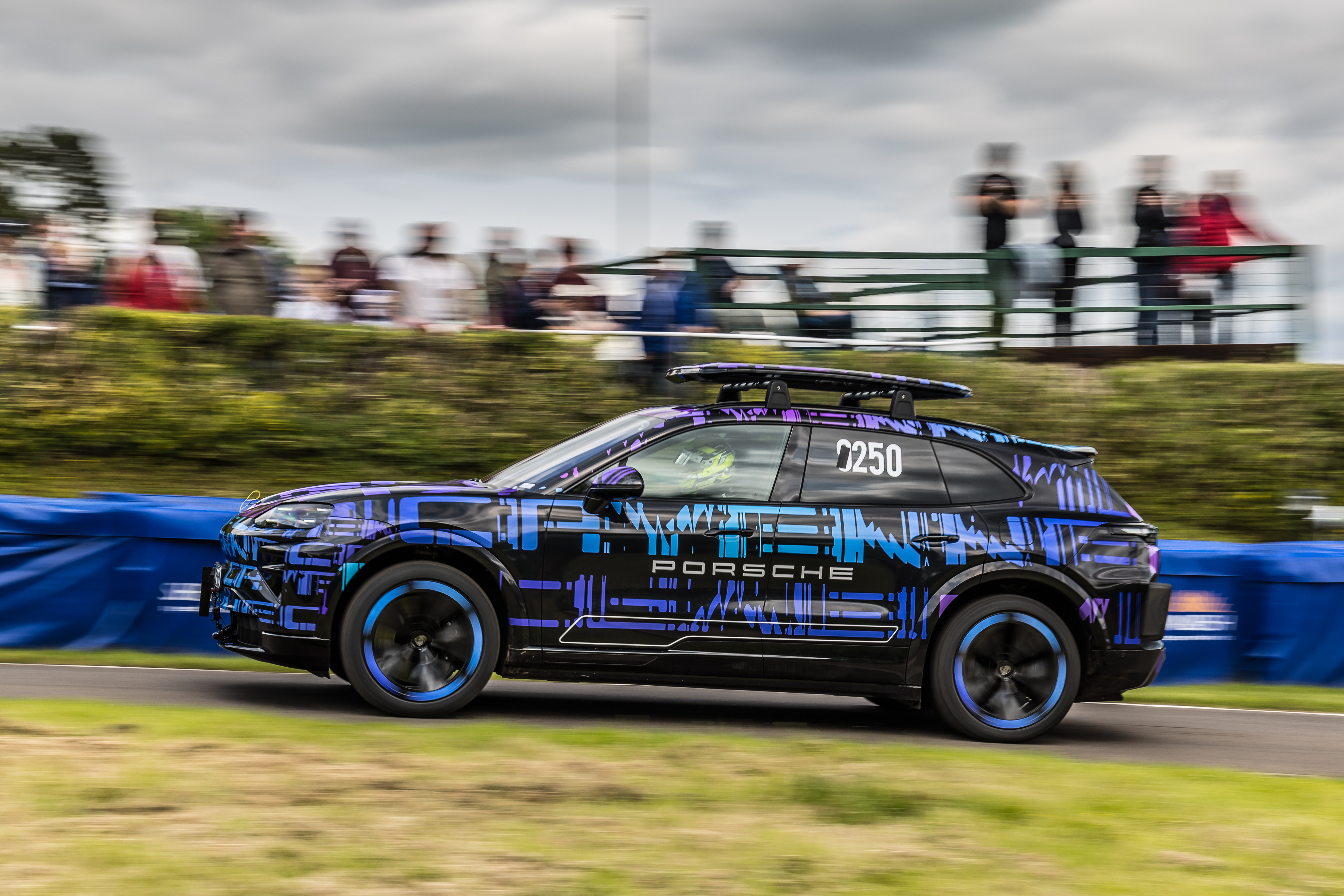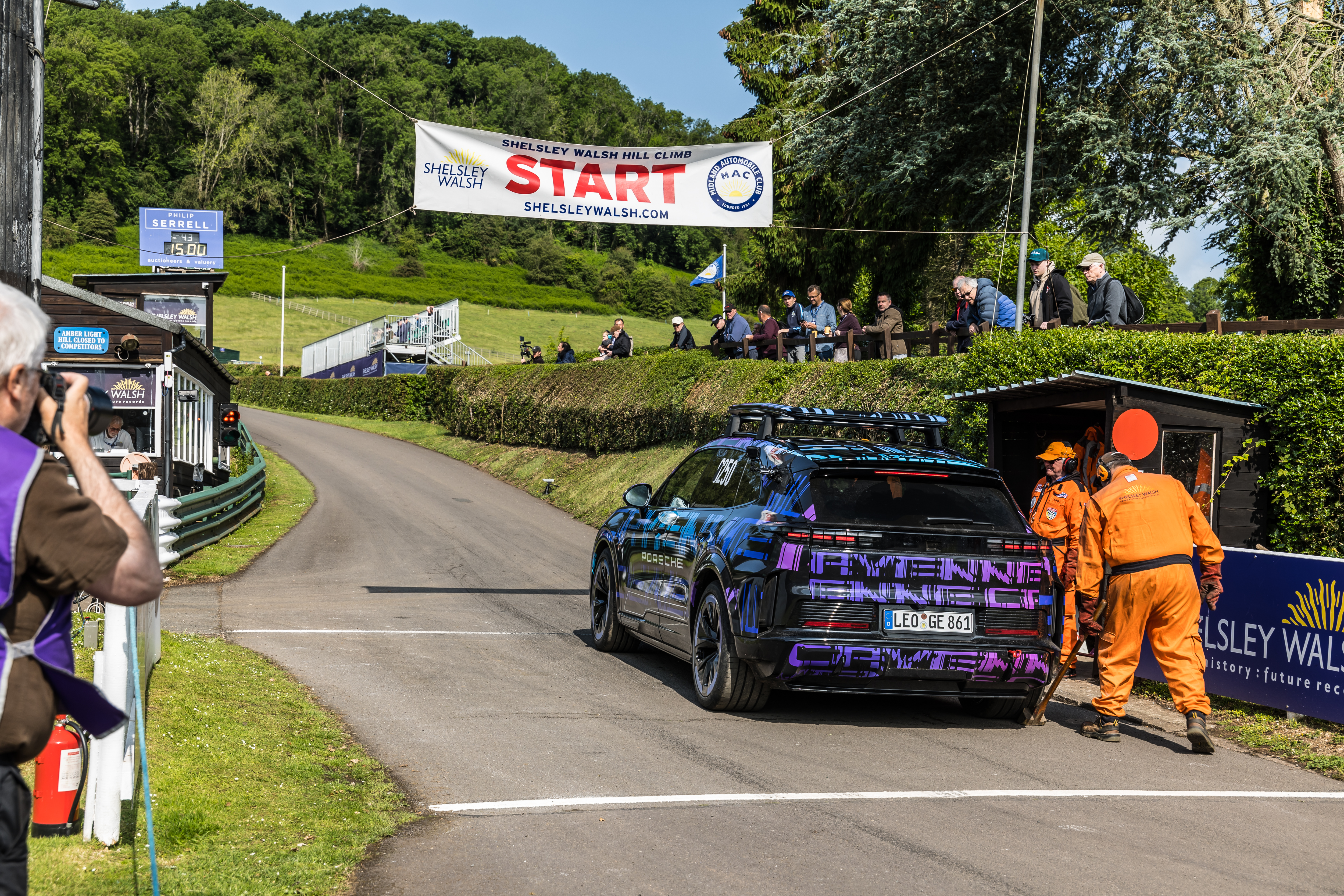 Porsche visade upp den höga prestandapotentialen hos sin kommande helelektriska SUV på en historisk plats: vid Shelsley Walsh Hill Climb, som har körts sedan 1905 och därför är ett av världens äldsta motorsportevenemang, deltog en prototyp i ett filmprojekt i nära anslutning till deltagarna i British Hillclimb Championship. Gabriela Jílková, simulator- och utvecklingsförare för TAG Heuer Porsche Formel E-teamet, körde den kamouflerade Cayenne Electric-prototypen uppför asfaltsbacken, som på sina ställen är endast tre och en halv meter bred, har en brant lutning på upp till 16,7 procent och är totalt 1 000 yards (914 meter) lång. Hon lyckades med besked: på sitt allra första försök slog Jílková den tidigare rekordtiden för SUV-modeller med mer än fyra sekunder. "Banan är utmanande och förlåter inte misstag“, sa hon efteråt. "Det finns inga avåkningszoner och begränsat med utrymme för korrigeringar. Men den aktiva fjädringen ger nya Cayenne enorm stabilitet och precision. Jag kände mig helt trygg hela tiden."