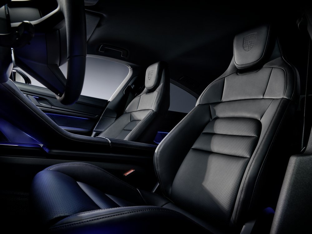 Svarta detaljer såväl exteriört som interiört framhäver det sportiga och eleganta utseendet hos Black Edition-modellerna. På Taycan är Sport Design-paketet, sidofönsterlisterna och modellbeteckningen bak i högblanksvart. Ljuslisten bak med belyst svart Porsche-logotyp ingår också som standard, likaså interiören med svarta accenter, förvaringspaketet och de belysta instegslisterna i svartborstad aluminium. Det större Performance Battery Plus, som annars är ett tillval för Taycan, Taycan 4 och Taycan 4S, ingår också för Black Edition-modellerna. Den högre bruttoenergikapaciteten på 105 kWh gynnar både prestanda och WLTP-räckvidd. För exempelvis den bakhjulsdrivna sportsedanen Taycan Black Edition, som levererar en effekt på upp till 408 hk, ökar räckvidden till upp till 668 kilometer. Det är 76 km, eller 12 procent, mer än i standardmodellen.