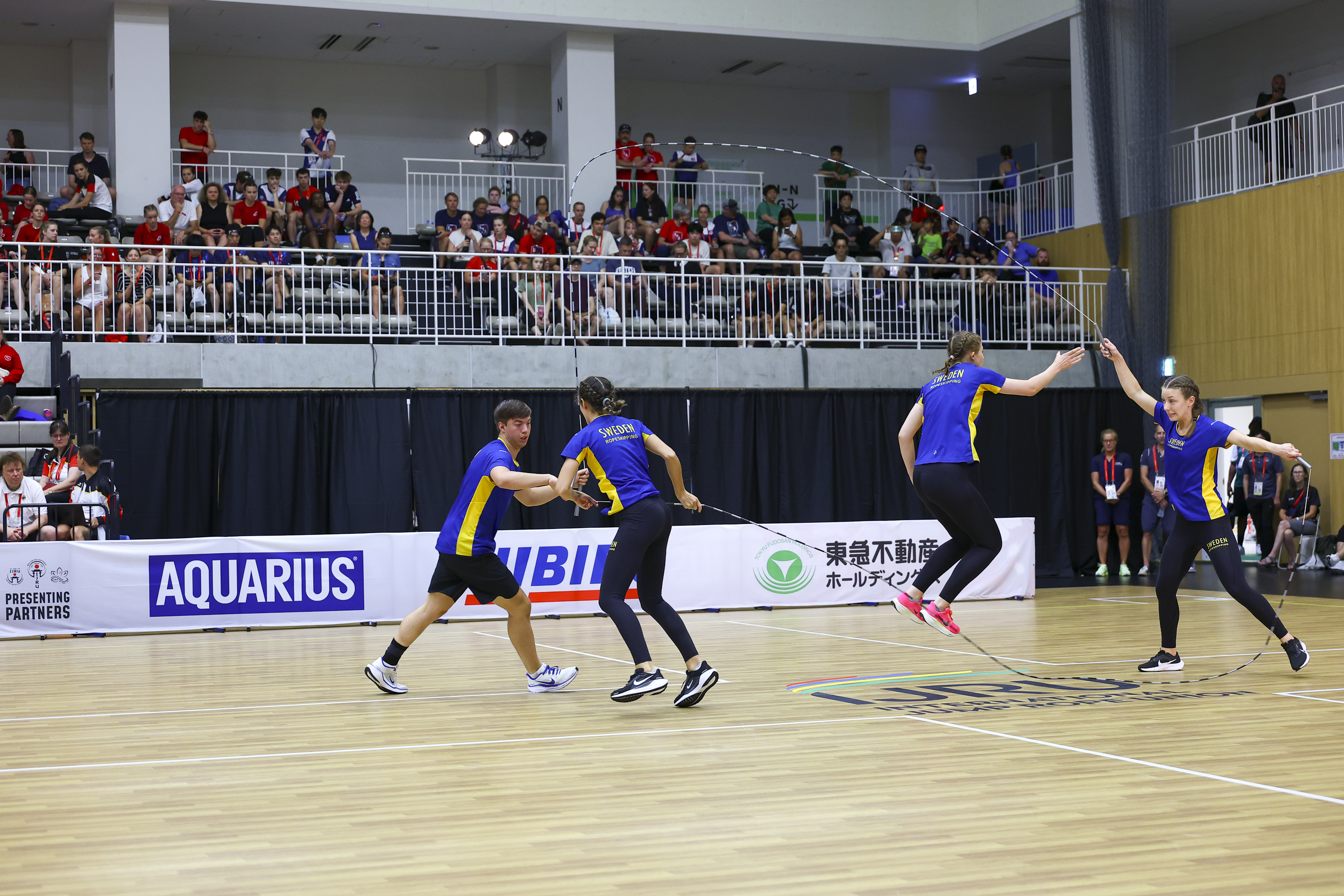 Med ett strålande program tog det svenska mixade laget den sista och sjätte finalplatsen i grenen Double Dutch Pair Freestyle. De slutade också tolva i grenen Singel Rope Team Freestyle. Laget som tog sig till final består av fyra hoppare från Kämpinge GF; Matilda Gustavsson, Gabriel Nordin, Lykke Rennmark och Cecilia Sanchez Barkenhammar. Utöver dem ingår Selma Selander, Elin Löfberg och Tuva Felix i laget. Finalen med det svenska laget går på lördag.