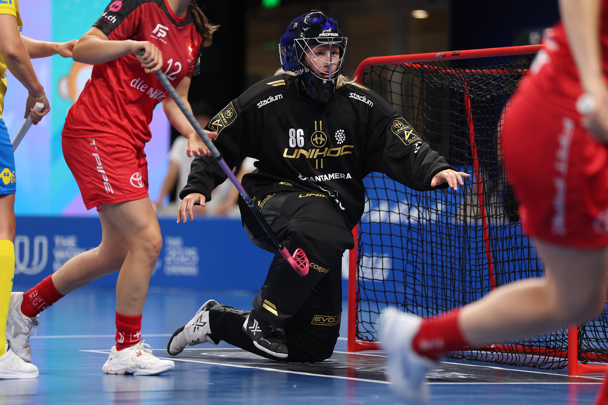 - En match som går lite upp och ner för oss i prestation. Vi har ju delar av matchen som är jättebra men också delar som är sämre där spelet hacker lite för oss och då vinner schweizarna ganska mycket energi i combination med att de i första perioden fick in två snabba mål. Då märker man direkt att de samlar kraft i det. Men jag tycker ändå, trots några dalar, att vi repar oss ganska bra ur dem. Och så är det ju skönt att stänga ner i slutet men det är ju en jättejämn innebandymatch det här, säger förbundskaptern Linn Lundström och fortsätter.