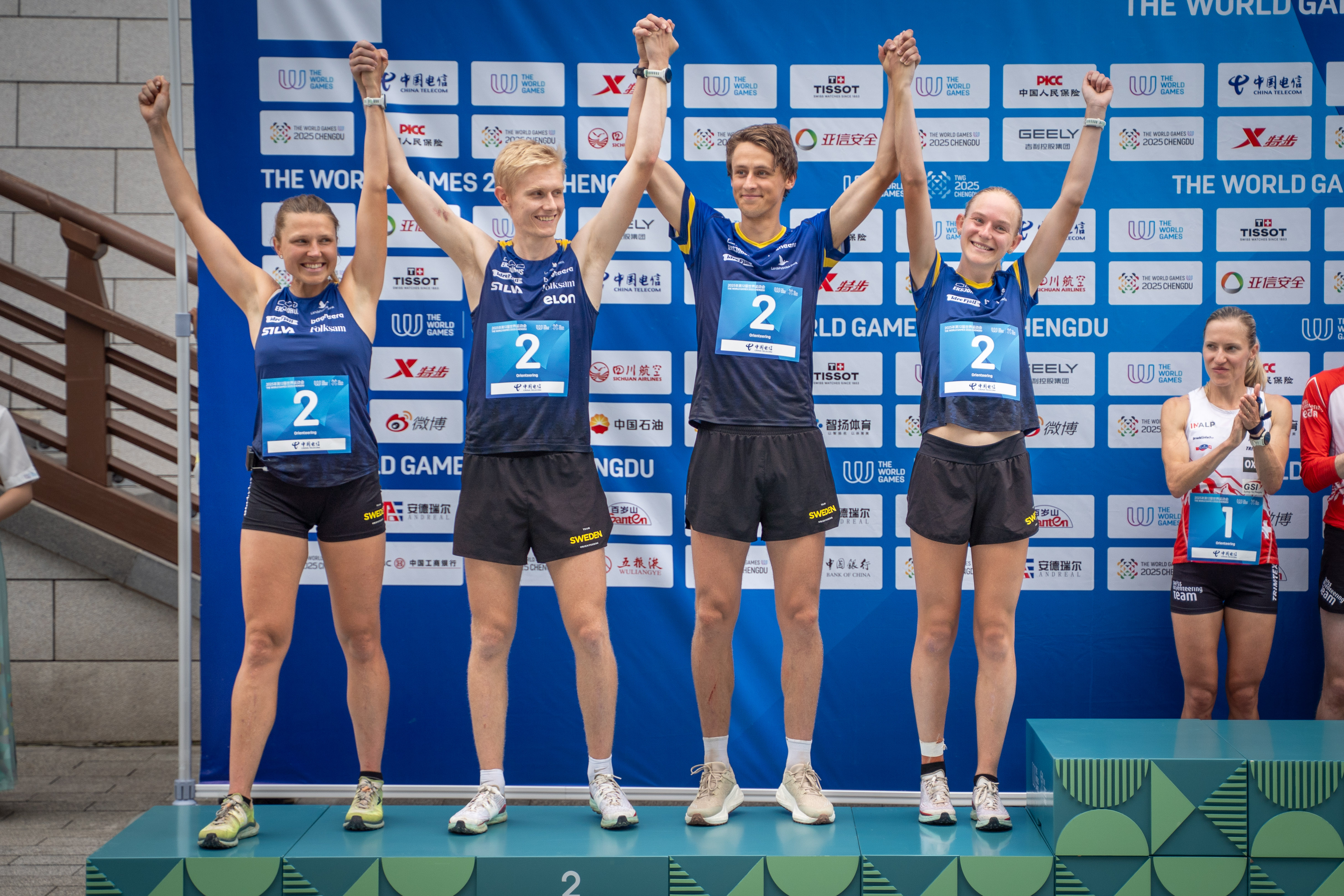 I den avslutande sprintstafetten på The World Games 2025 lyckades det svenska laget ta ett silver endast fem sekunder från seger. Vann gjorde Schweiz. "Det kändes väldigt bra. Jag tog med lärdomarna från igår så jag är väldigt nöjd med genomförandet. Det var skönt att vi alla i laget håller ihop det så bra som vi gjorde i det här trixiga området" - Jonatan Gustafsson.