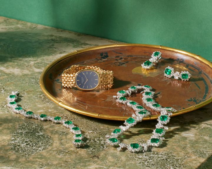 Bland de exklusivaste smyckena i The Watches & Jewellery Collection märks även ett gnistrande gala-garnityr bestående av hela 34 diamantomslutna colombianska smaragder av högsta klass. Sällsynt och åtråvärd lyx hittar man också i ett smäckert halssmycke bestående av extremt ovanliga blå och rosa diamanter med rektangulärt modifierad briljantslipning. Naturliga rosa diamanter är bland de mest värdefulla och sällsynta av jordens skatter och kan säljas för mer än två miljoner dollar per carat.