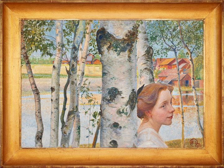 For this year's final Fine Art & Antiques auction, the striking portrait "Lisbeth by the Birch" by the renowned Swedish artist Carl Larsson will go under the gavel at Stockholms Auktionsverk. The motif is recognized from the artist's monumental work "Breakfast in the Green", painted in 1910-1913, where Carl Larsson depicts his family’s breakfast excursion to Bullerholmen just south of the farm Lilla Hyttnäs in Sundborn. The painting that is currently up for sale is dated 1910 by the artist himself, and in it only his second oldest daughter Lisbeth is portrayed.