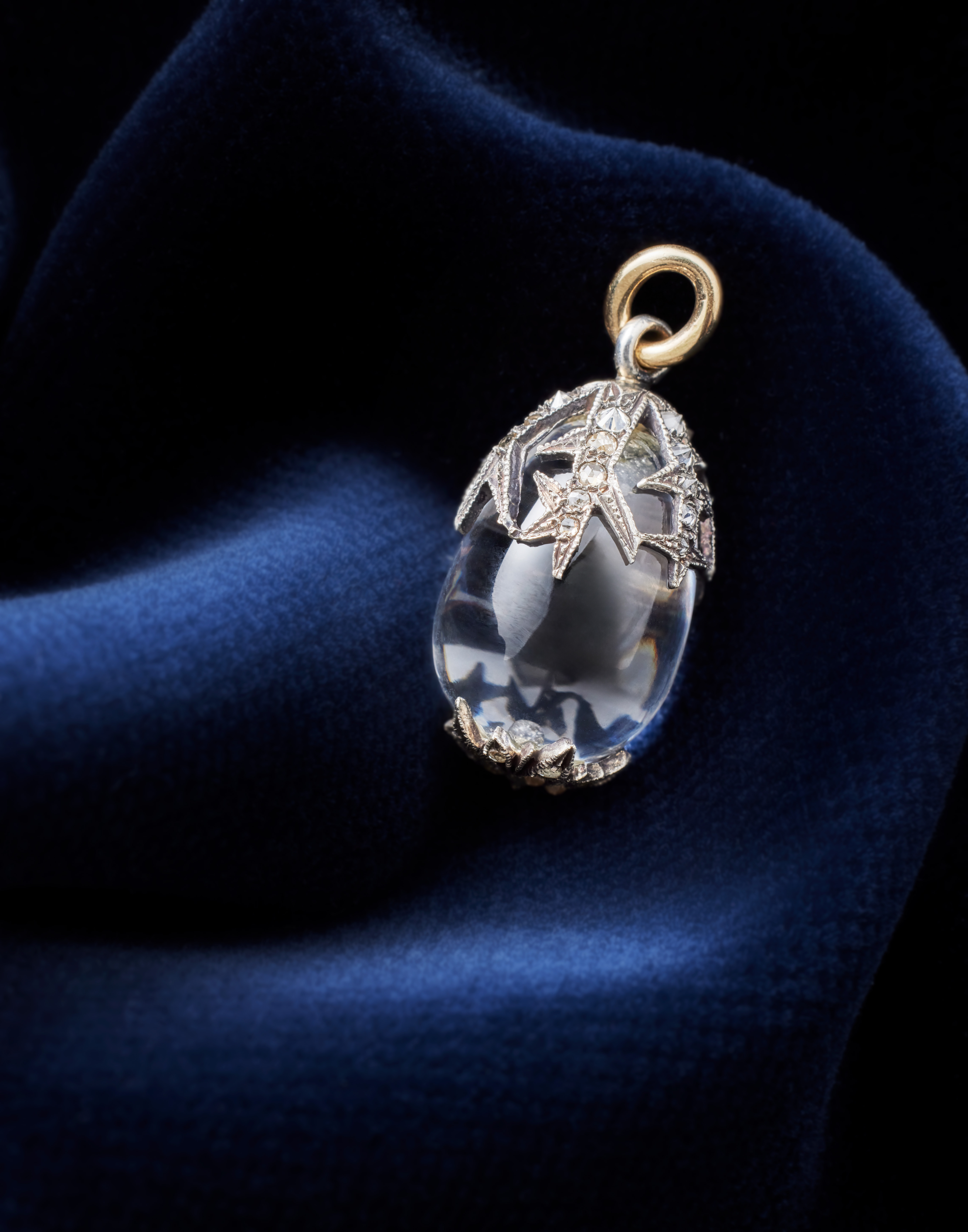 The Winter Egg pendant in platinum silver with diamonds and rock crystal will be auctioned at Stockholms Auktionsverk Fine Art & Antiques on June 12th. Available for showing at Nybrogatan 32 in Stockholm between June 4th and 10th.